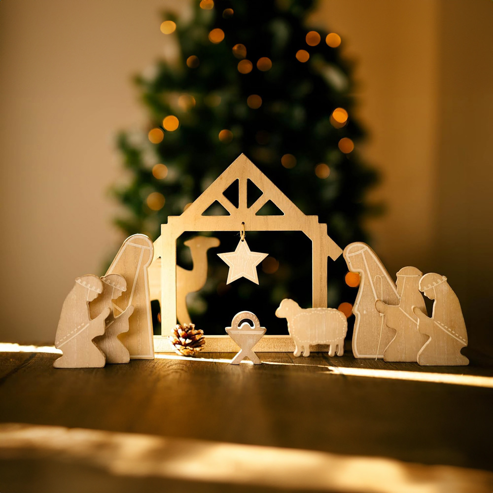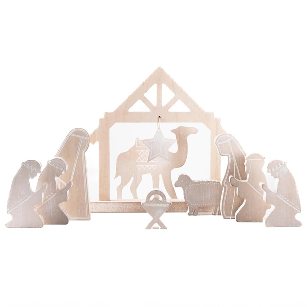 Marco Paul Wooden Christmas Nativity Set 10 Pack