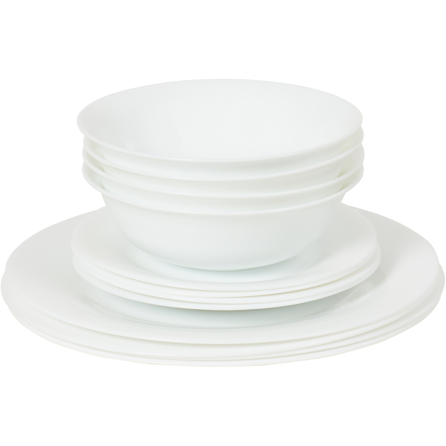 Set up an opulent dinner setting for four with this 12-Piece Aria Dinner Set in classic white. The 12-piece set includes dinner plates, side plates and bowls made using high-quality opal glass known for its high resistance to breaking and chipping. Extremely tough and lightweight with a stackable design, this set is safe to use in a dishwasher, microwave and freezer to offer the utmost convenience in any kitchen.