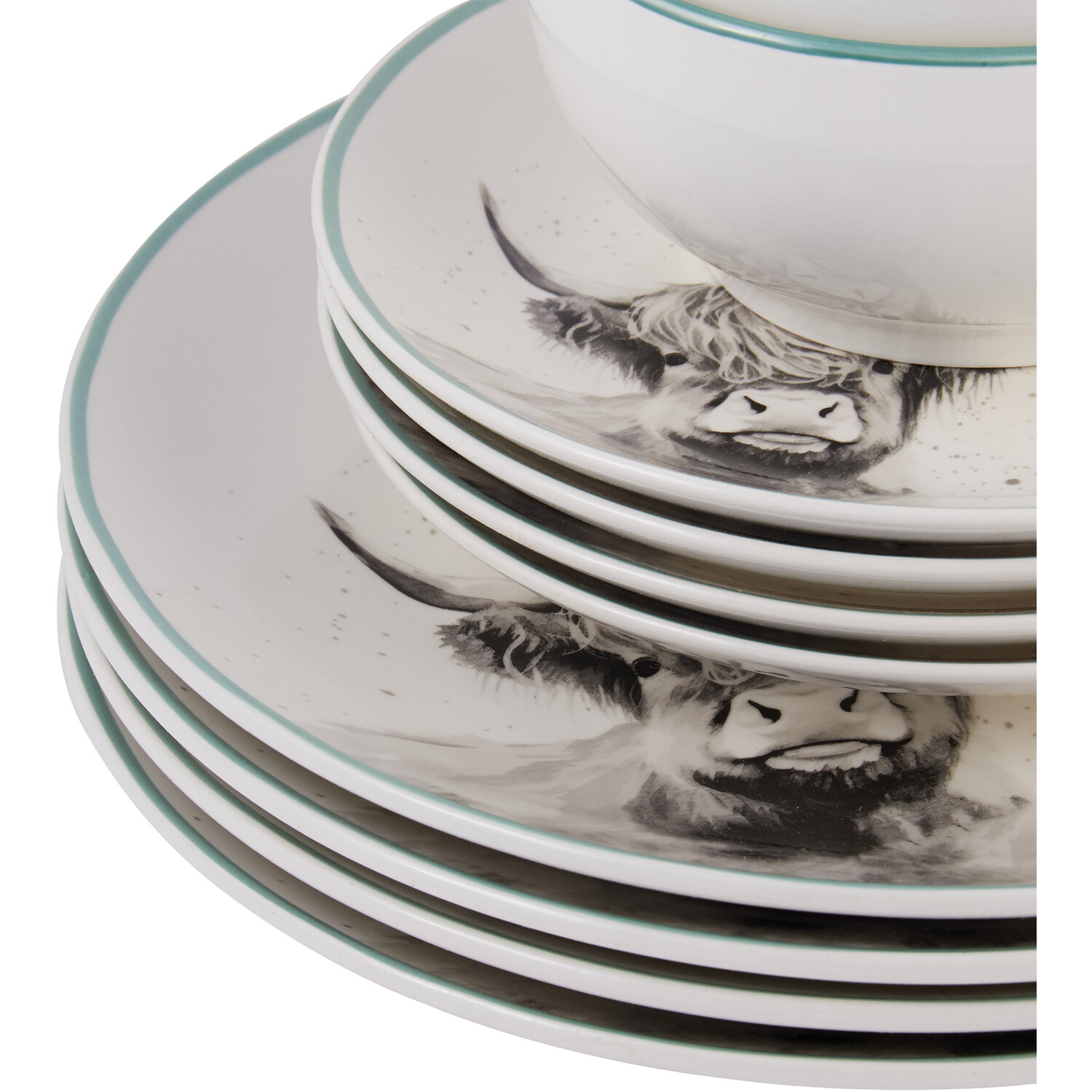 The 12-Piece Highland Cow Dinner Set is an adorable and unique addition to your kitchen cupboard and dining space. The set is ideal for couples and small families and features a print of Angus the Highland Cow to bring a smile to your face whenever you eat. It's perfect for bringing a country theme into your kitchen and will look fantastic on your table for everyday dining and special occasions.
