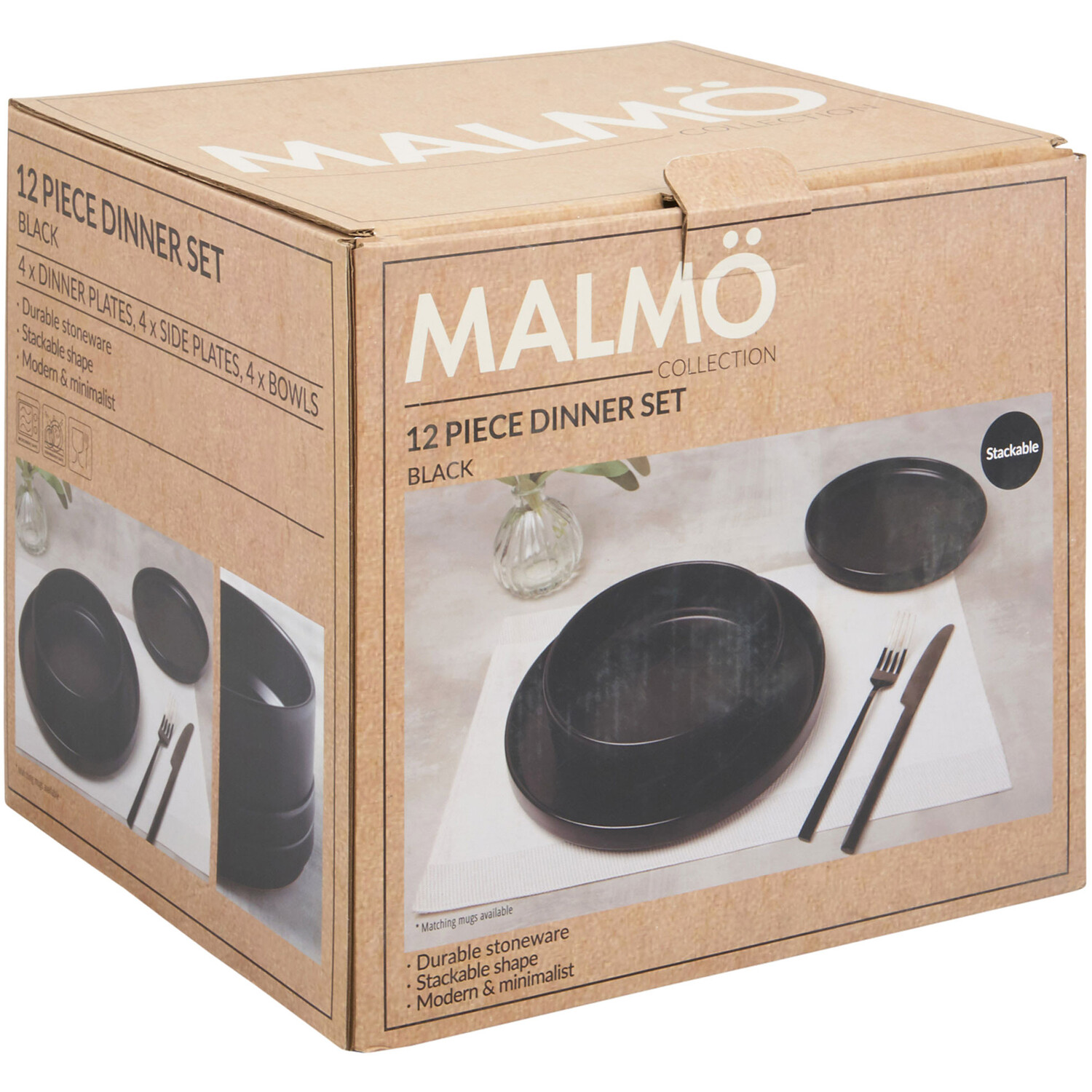 Discover contemporary elegance with the 12-Piece Malmo Stacking Dinner Set, designed to enhance your dining experience. Inspired by Scandinavian aesthetics, the practical stacking shape and neutral tones make it a stylish choice for any occasion, whether casual family meals or formal gatherings. This set is ideal for showcasing on open shelves, adding a touch of modern flair to your kitchen. Number of Pieces: 12. Height: 2.9cm (dinner plate) / 2.3cm (side plate) / 5.7cm (bowl). Width: 27cm (dinner plate) / 19.5cm (side plate) / 19.3cm (bowl). Depth: 27cm (dinner plate) / 19.5cm (side plate) / 19.3cm (bowl). Weight: 8.6kg. Material: Stoneware. Includes: 4 x Dinner Plates, 4 x Side Plates, 4 x Bowls. Dishwasher Safe: Yes. Microwaveable: Yes.
