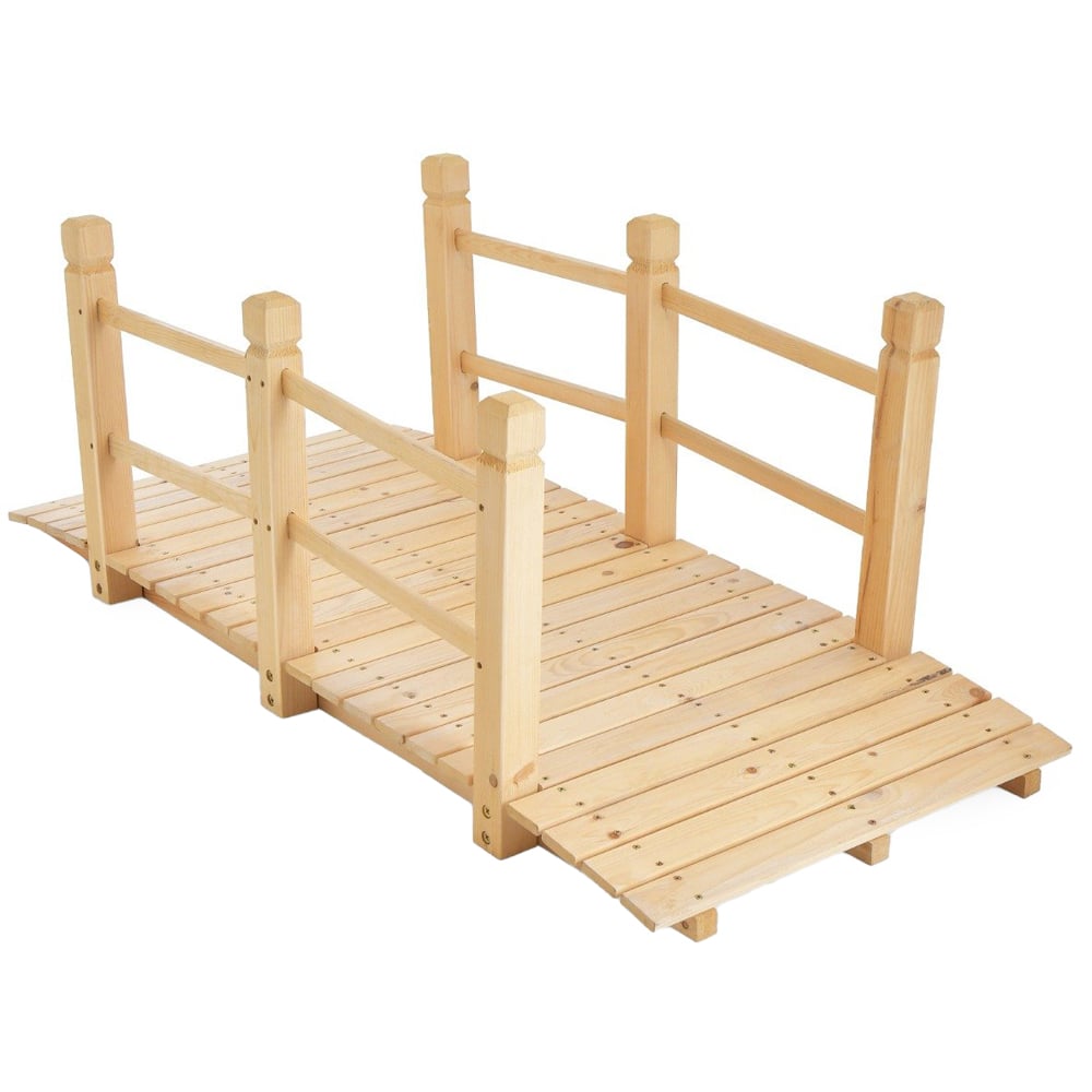 Add a touch of charm to your garden with the Costway Natural Wooden Garden Bridge with Double Safety Rails, where delicate craftsmanship meets practicality. Made from high-quality fir wood, this decorative bridge is built to last, with a carbonised surface that resists cracking and peeling. Its clean lines and stained finish make it a standout addition to any backyard, garden, creek, gravel road, or farm. The double side rails not only look great but also add an extra layer of safety to keep you secure. With a robust design that can hold up to 180 kg, it’s ideal for soaking in the views and connecting with nature. Plus, it’s super easy to put together and maintain, making it a breeze to enhance your outdoor area.