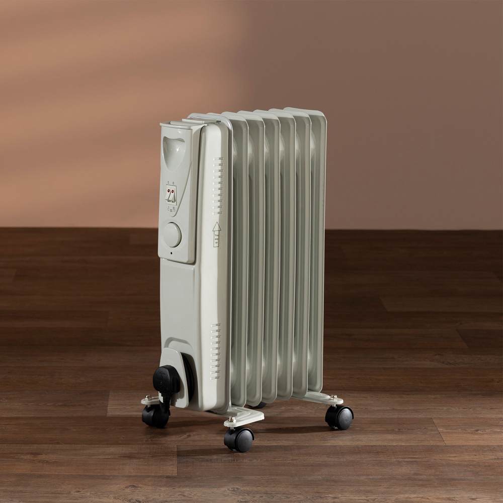 Say goodbye to cold rooms with the Daewoo 5 Fin White Oil Filled Radiator 1500W. This radiator is designed to provide efficient heating for any space, whether its a home, garage or small office. With a powerful 1500W output, this radiator delivers reliable warmth, easily adjusted through dial controls to adjust the temperature. Its slim and portable design, supported by four castor wheels, ensures that it can be easily moved to any room where additional heat is needed. The radiator features an overheat protection, to ensure safety.