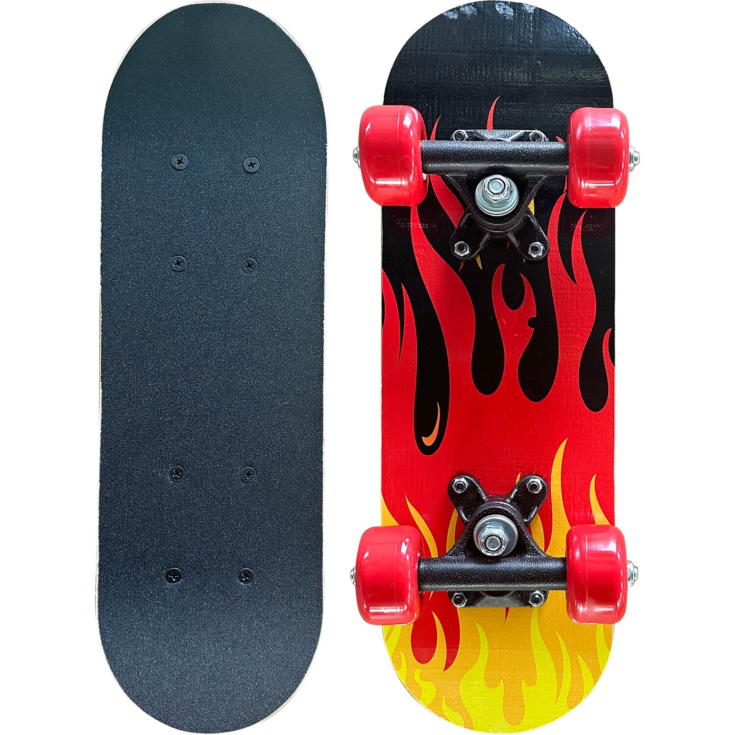 The 17-inch Mini Wooden Skateboard is the perfect first skateboard for young kids. The board comes in various cool designs, each featuring secure wheels and an anti-slip footplate. This fun kids' skateboard will encourage active outdoor play while helping children with their balance and coordination.