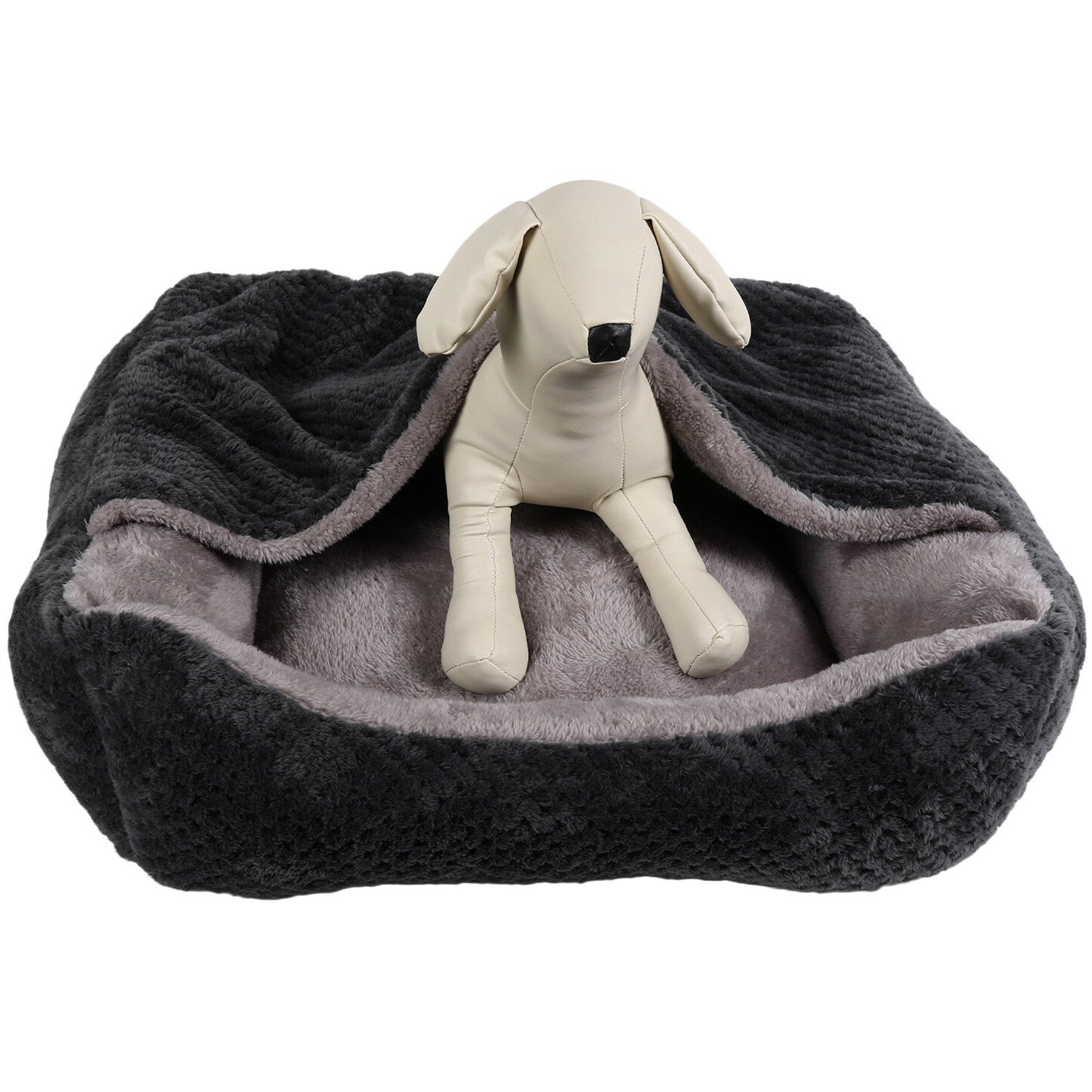This 2 in 1 Blanket Pet Bed is a cosy delight for your furry friend. For pets who enjoy hiding under blankets and snuggling up in enclosed spaces, it's perfect for sleep use or an all-day cuddle. With a sumptuously soft texture, this machine-washable bed is sure to help your pet feel relaxed and comfortable even when you're not there. Height: 50cm. Width: 50cm. Depth: 18cm. Weight: 1.5kg. Material: Polyester.