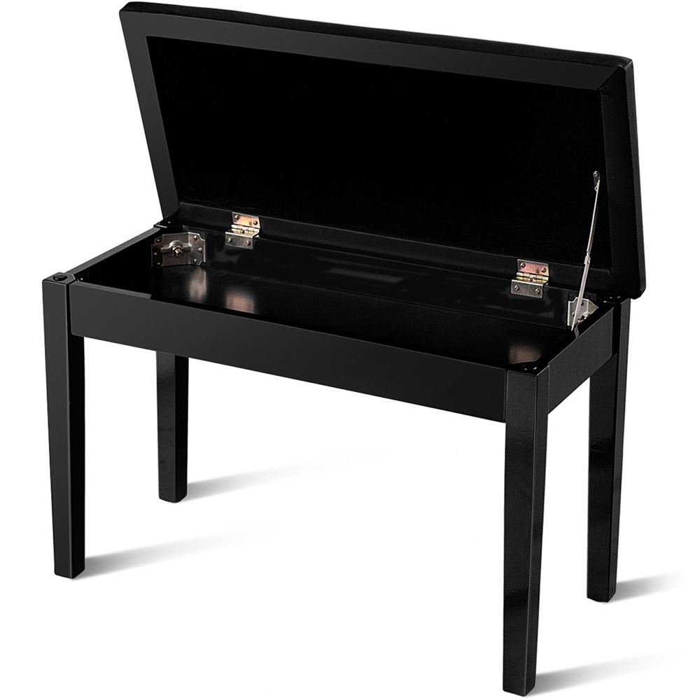 Elevate your musical sessions with the Costway 2 in 1 Black Padded Piano Bench. It is a versatile piece that not only offers a comfortable seating solution but also doubles as a practical storage unit. Crafted with natural wooden legs, this bench ensures stability and can support up to 200kg, making it ideal for duet performances or tutoring sessions. The thick sponge-filled PU leather seat provides superior comfort and includes noise-reduction pads for undisturbed music enjoyment. Additionally, the hidden storage space under the seat is perfect for keeping music books, lyrics, and other essentials neatly organised. With its classic black finish, this bench seamlessly blends with any home decor and can also be used as a stylish vanity or dining stool.