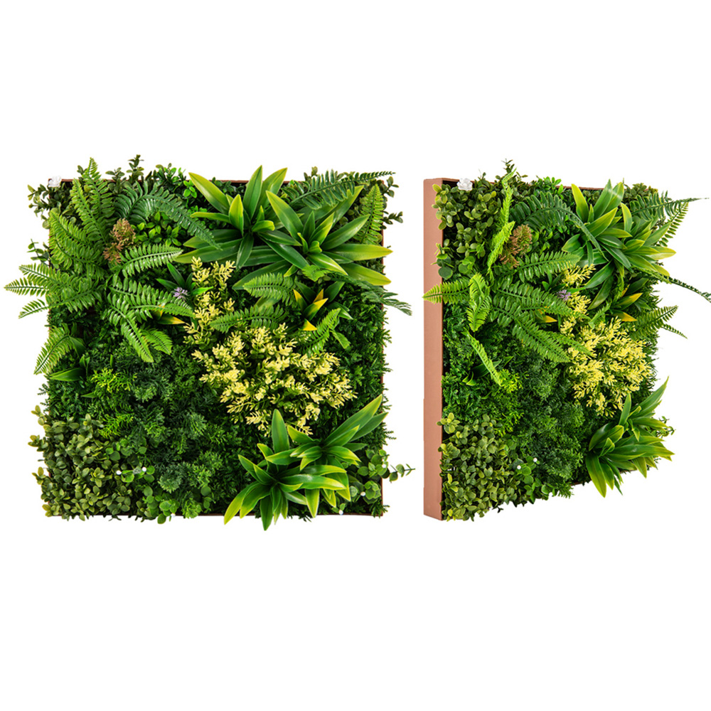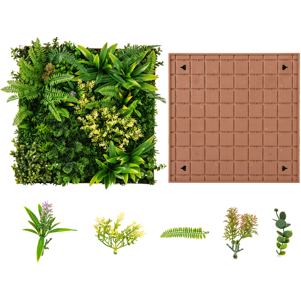 Bring a vibrant touch of nature into any space with this Costway Square Framed 1.6 x 1.6ft Artificial Foliage Wall Art 2 Pack. Featuring 11 types of faux plants, each piece is carefully crafted with lifelike details, including vivid flowers and gradient leaves that create a dense, lush 3D effect. Made from 100% new, odourless PE material, this wall art is fade-resistant and sun-proof, making it perfect for both indoor and outdoor use. Designed to stay fresh and green in all seasons without any upkeep, it requires no watering or sunlight, just a quick dusting to maintain its beauty. The framed greenery includes 16 metal rings for easy attachment, along with pre-drilled holes for simple mounting on any wall in the living room, office, balcony, or bedroom.