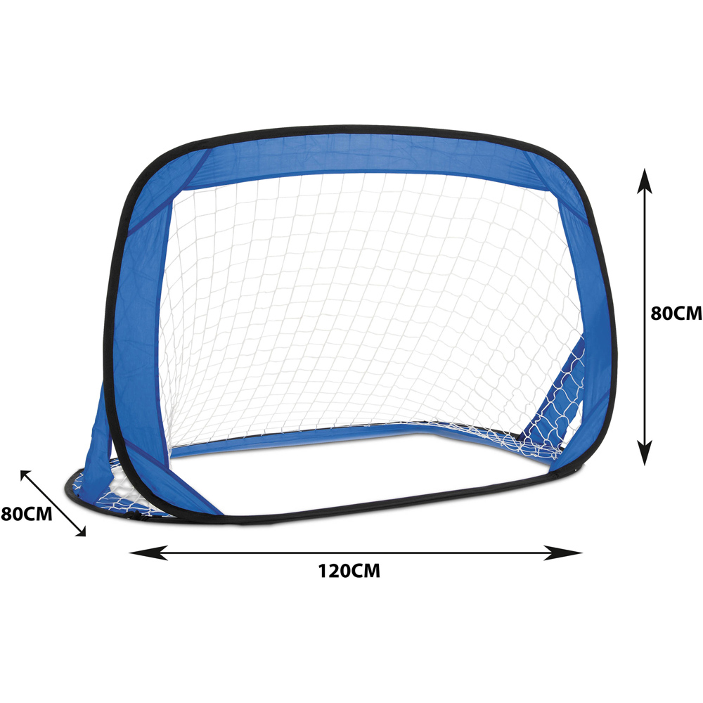 Enjoy a delightful game with Toyrific 2 Pop-Up Goals. These portable goals are specifically designed for swift and effortless setup, making them ideal for spontaneous soccer matches. Crafted from sturdy materials, they ensure long-lasting durability. Additionally, a zip-up bag is included for convenient storage. Once unpacked from the handy carry case, the goals effortlessly pop up on the ground. Securing them firmly in place is a breeze with the pegs and poles provided. Rest assured, kids will be scoring goals in no time with this fantastic set.