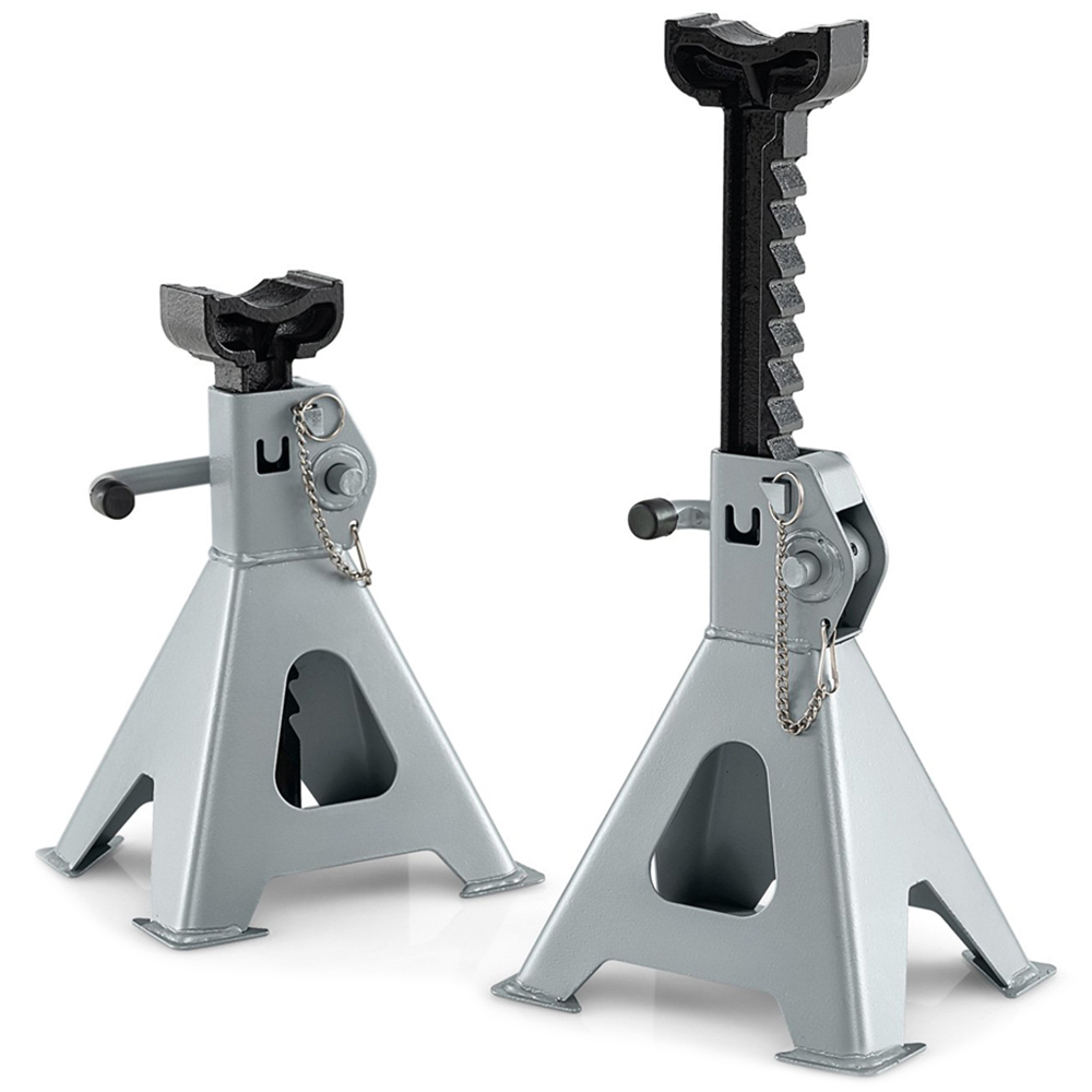 Lift your vehicle confidently with the Costway 2 Tonne Heavy Duty Steel High Lift Jack Stand, designed to offer unmatched stability and safety. Constructed from robust heavy-duty steel and featuring a nodular cast iron ratchet bar, these jack stands can support heavy loads up to 2 tons with ease. The large base and pyramid structure with 4 enlarged foot pads ensure your vehicle remains stable and secure on any surface. With 10 adjustable heights, these stands are versatile enough for a variety of vehicles, from SUVs to sedans and more, while the double security protection with a reliable handle lock and safety pin provides extra peace of mind when working underneath your vehicle.