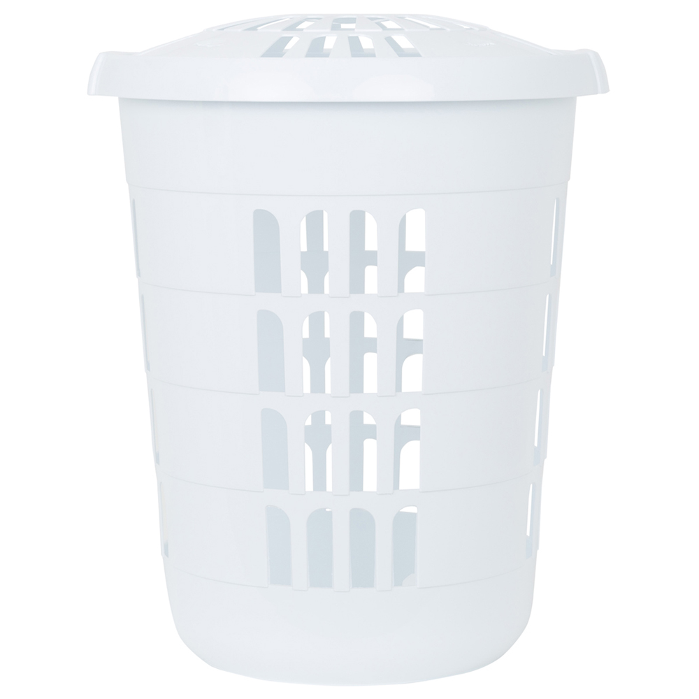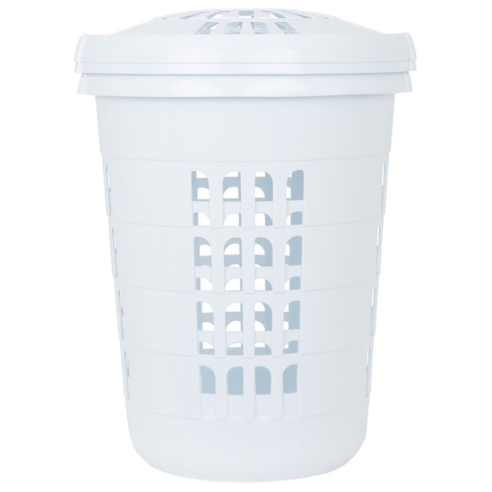 Keep your dirty laundry organised in one place with Wham Casa Ice White Plastic Deluxe Round Laundry Hamper 2 Pack. This uniquely designed basket brings a fun element to your home laundry solution. Made from plastic, the basket is lightweight and durable. Ideal for keeping your laundry sorted and stored, the basket will be a great addition to your bathroom or bedroom. The pack includes two baskets. Dimension: H58 x W48 x D48cm.