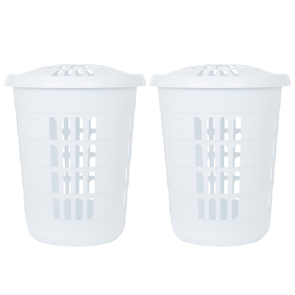 Wham Casa Ice White Plastic Deluxe Round Laundry Hamper 2 Pack