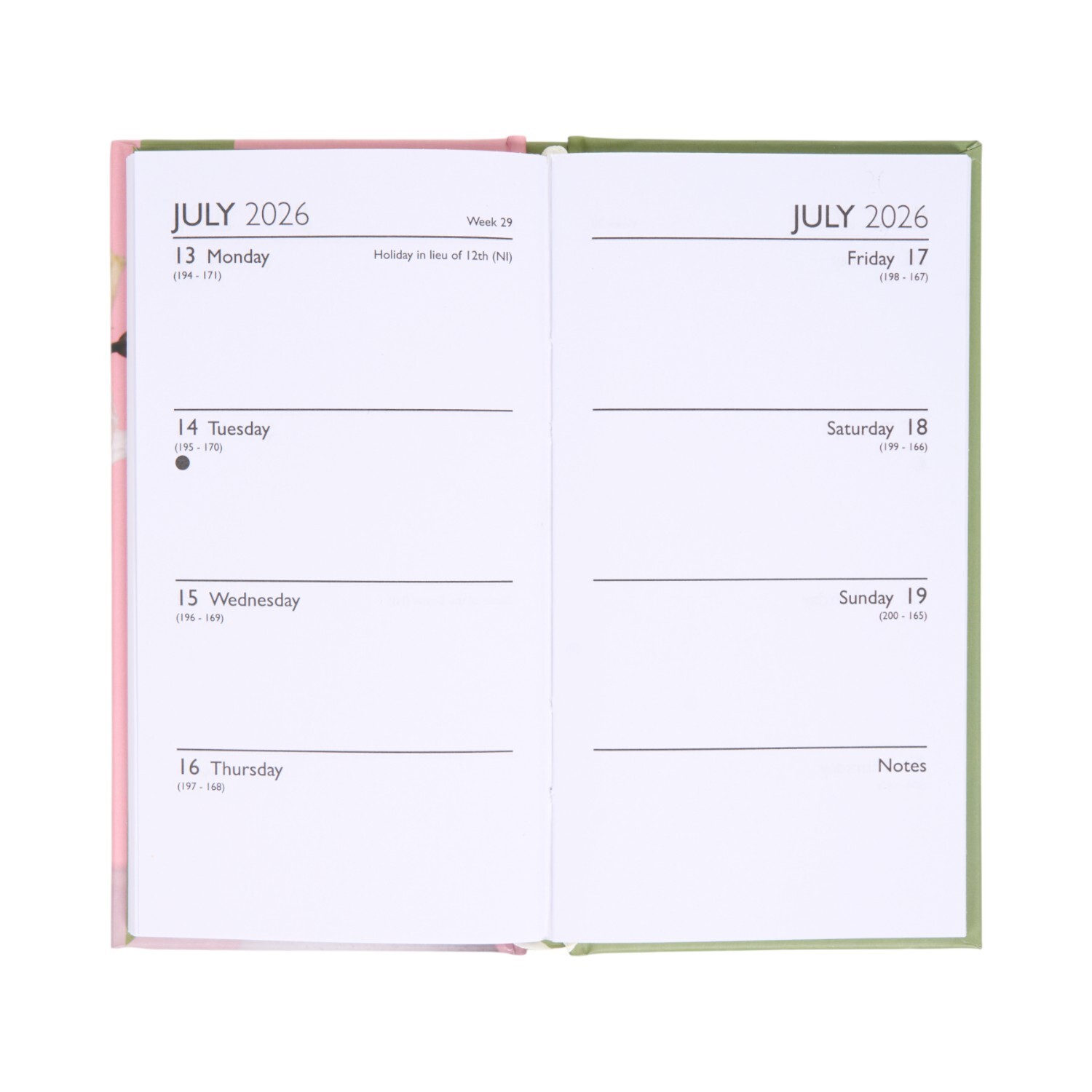 Stay on top of your tasks with the 2026 Floral Slimline Pocket Diary. Available in an assortment of styles, this diary showcases a beautiful floral print to bring a lively touch to your everyday routine. It offers plenty of pages and a practical layout so you can easily pen down ideas, thoughts, and reminders. Its slim and compact design ensures easy carrying, making it a great addition to your school or work bag.