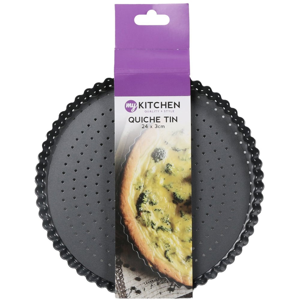Make delicious lunches with the help of the 26cm Quiche Tin. This brilliant tin has a detachable base for easy removal of your quiche and features a traditional fluted edge to get the perfect look. It's been crafted with a non-stick coating and features air holes along the base to give your pasty a crisp finish. Suitable for all conventional oven types, this is the perfect kitchen accessory for any keen baker.