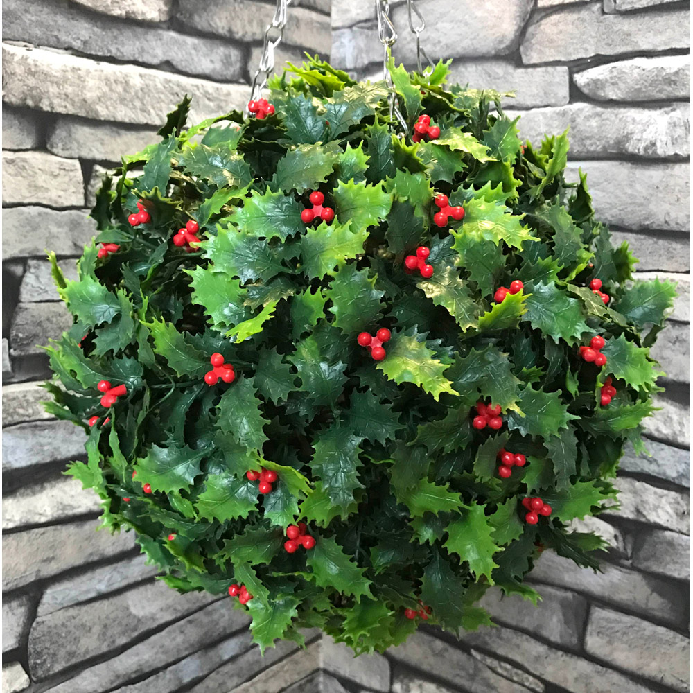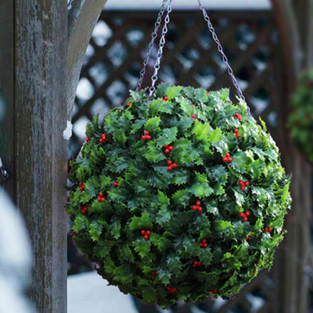 Add a festive touch to your outdoor décor with this Best Artificial Holly Ball Christmas Bauble 28cm. Built to withstand UV rays and harsh weather, it is perfect for brightening up any space. It has a sturdy triple-hanging chain and is set on a solid frame for lasting support. Sprinkled with realistic, dense leaves and adorned with red berries, it offers a classic, festive look without the need for any maintenance.