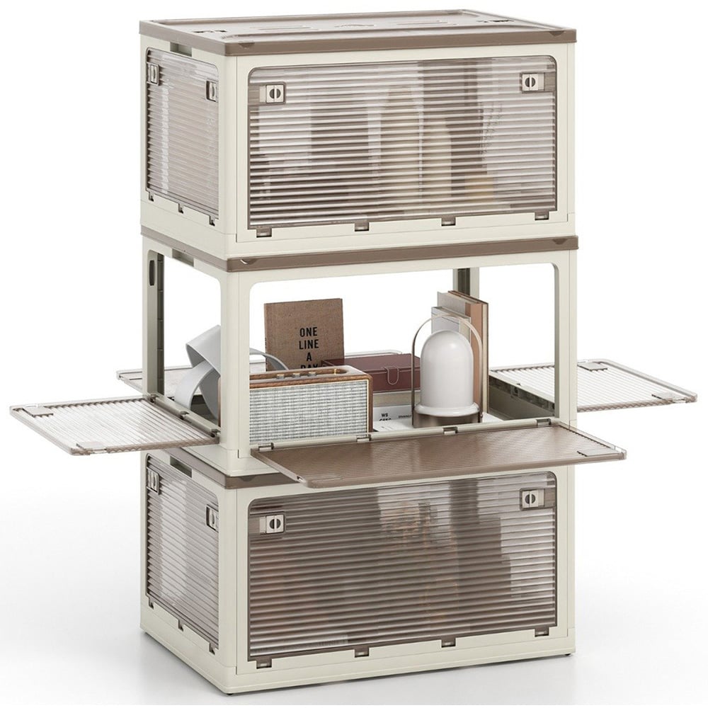 Effortlessly enhance your home organisation with the Costway 292L White Collapsible Storage Bin Set of 3. These stackable storage boxes come equipped with lids and boast a substantial 292-litre capacity, making them perfect for stowing away clothes, toys, books, and snacks. Their innovative design features five opening ways, including flip-down doors on all sides and top lids, ensuring easy access from any angle. The inclusion of wheels adds mobility, allowing you to move them seamlessly across hard surfaces. When not in use, their collapsible nature and easy setup save you both space and time, making these bins an essential addition to any room, from kitchens to closets, and even car trunks for camping trips.