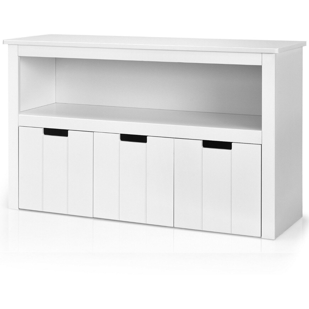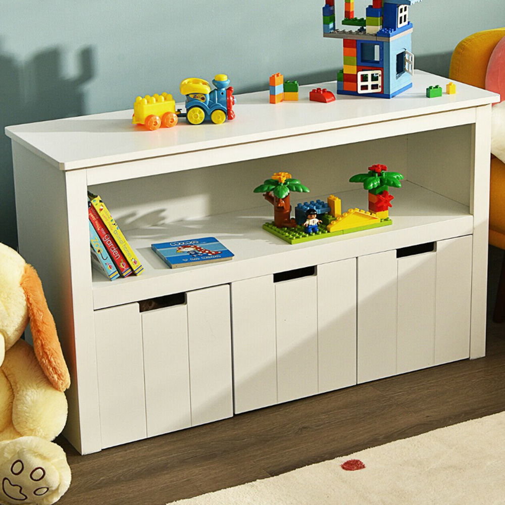 Make room for creativity and tidiness with the Costway 3 Drawer Single Shelf White Kids Storage Cabinet. It is an inventive solution to keep your child's space organized and stylish. This multifunctional piece not only serves as a vast storage unit but also transforms into a children's table, perfect for dining, reading, or drawing. Its slide-out drawers, equipped with smooth wheels, allow for easy access without any hassle, making it child-friendly. The cabinet's robust construction with high-strength MDF boards ensures durability, while its simple, chic design seamlessly blends with any room decor. Whether it's for toys, books, clothes, or other daily supplies, this storage cabinet offers a versatile organizing solution that meets the needs of a lively family environment.