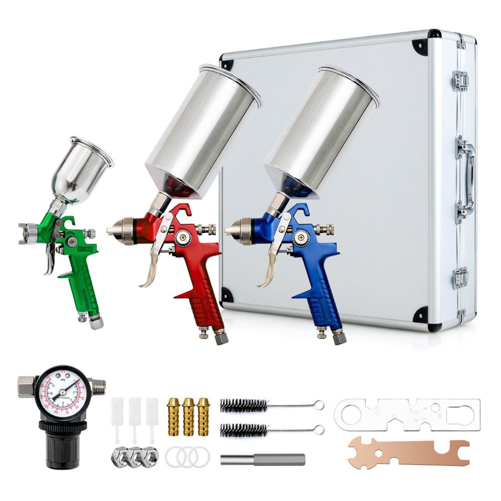 Unlock the potential of precision painting with the Costway HVLP Auto Paint Car Primer Air Spray Gun Kit 3 Piece. Whether you are aiming to perfect the finish on cars, machines, or smaller crafts, this kit is equipped with three differently sized nozzles to ensure optimal application for every task. The 1.0mm, 1.4mm, and 1.7mm nozzles are perfect for everything from fine finishing and touch-ups to applying heavier materials like primers. Enhanced with HVLP technology, this spray gun kit promotes efficient use of paint, reducing overspray and saving on costs. Lightweight and designed for ease of use, the kit also includes a convenient carrying case, making it perfect for both professional and DIY enthusiasts who demand quality and versatility in their painting tools.
