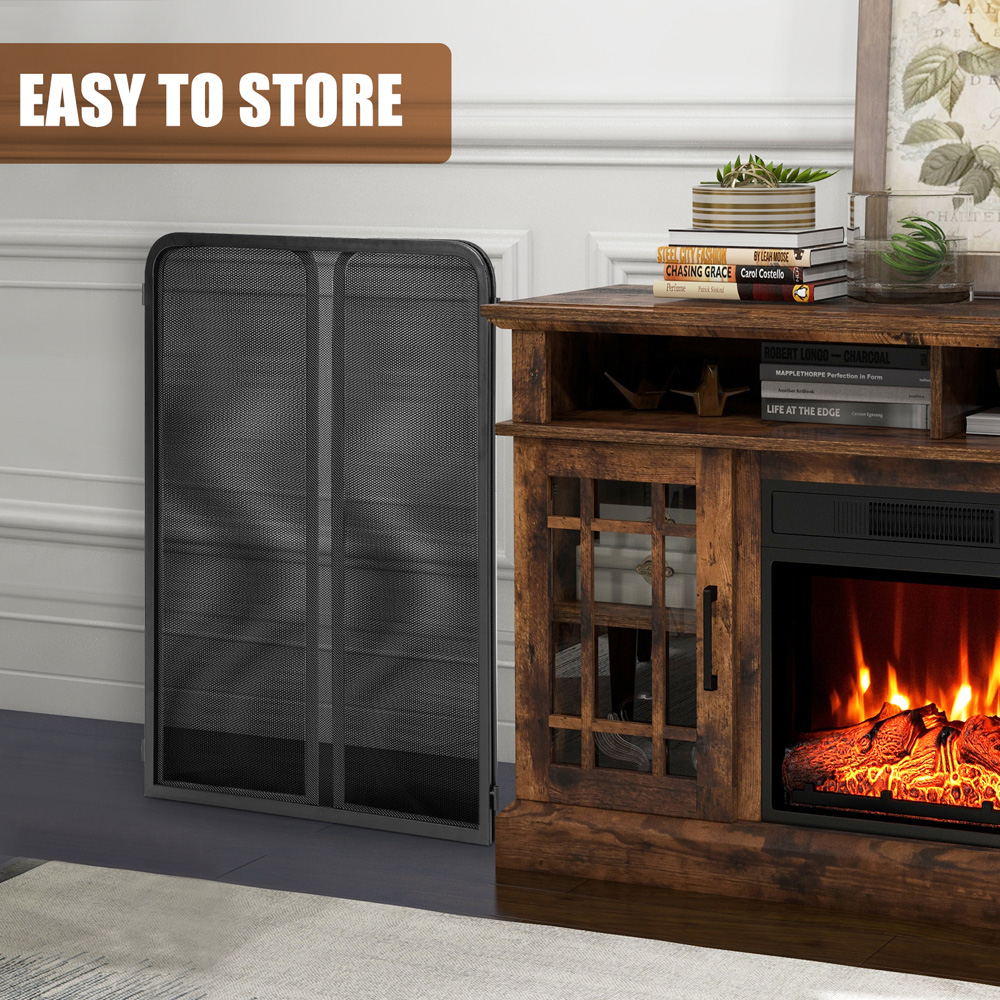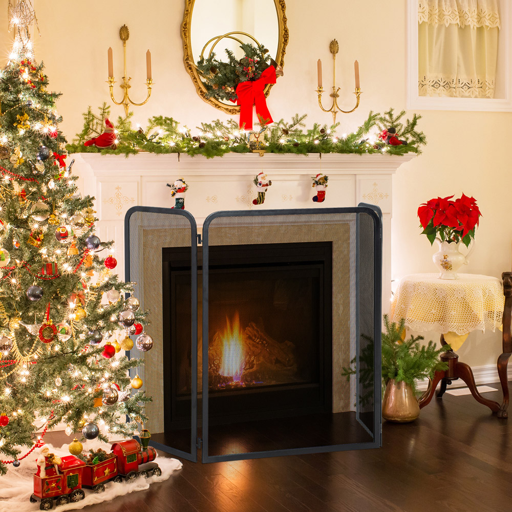 Elevate the safety and aesthetics of your living space with the Costway 3 Panel Metal Fireplace Screen. It is designed with flexible hinges and a robust metal frame. This screen not only enhances the charm of your fireplace but also ensures a safer environment for children and pets by effectively blocking sparks and wood splinters. Its foldable design allows easy adjustment and storage, making it a perfect addition to your home decor, especially during the festive season. With no assembly required, you can immediately benefit from its functionality and vintage appeal.