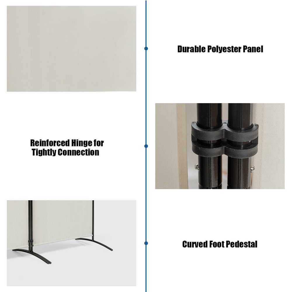 Create a stylish divide in your room with the Costway 3 Panel Beige Foldable Room Divider. Made from premium polyester fabric and steel tubes with curved feet, it offers both style and durability. Each panel connects with a strong hinge, allowing you to fold and unfold the screen easily. The three flexible panels allow you to partition larger spaces effectively. It works well for creating a private space in any room and can also serve as a background screen. With its simple and modern design, it enhances the beauty of your space. It folds for convenient storage and is perfect for establishing a private area. The durable hinges provide flexibility, and the lightweight design makes it easy to transport. Its multipurpose use makes it suitable for both home and office settings. The classic design fits well with most decor styles, while the solid steel frame and polyester fabric ensure it lasts a long time. The divider is easy to assemble with clear instructions.