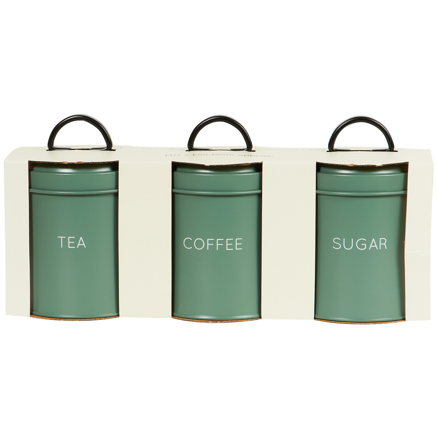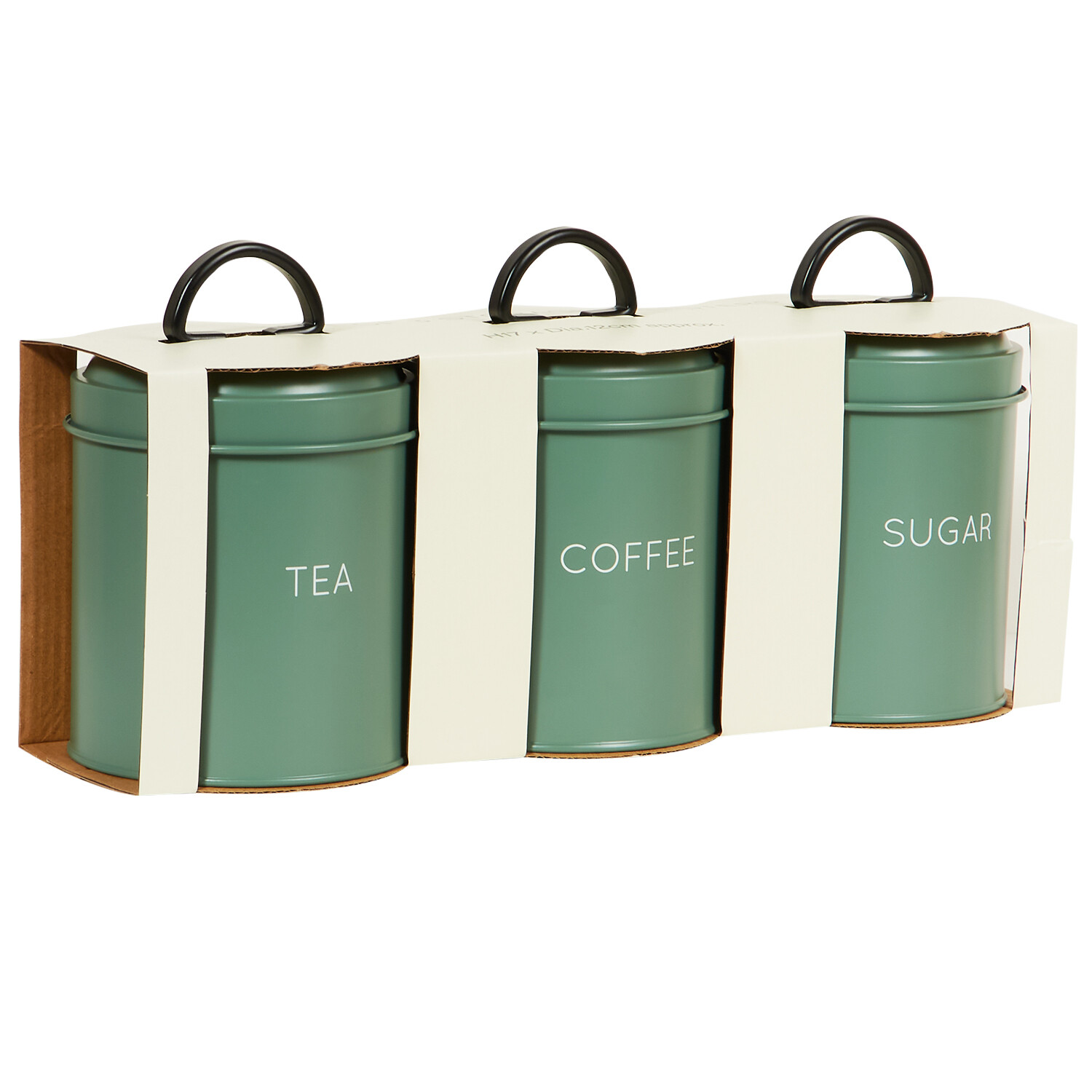 Available in white or green, this 3 Piece Canister Set is a must-have addition to any kitchen. This three-piece set includes tea, coffee and sugar canisters with a wide looped handle on the lids for easy and convenient access. Neutral and simple in design and finished in a matt texture, these canisters are a fantastic kitchen storage solution.