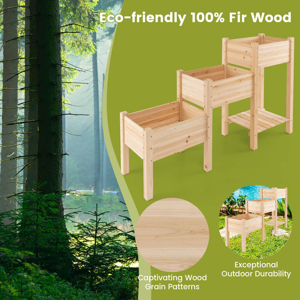 Enhance your gardening experience with the Costway 3 Tier Natural Raised Garden Bed with Planter Box. Made from high-quality fir wood, this garden bed is both durable and visually appealing with its natural wood grain. It offers ample space for a variety of plants, making it a versatile decorative option for any setting. Each planter box comes with drainage holes to keep the water flowing and the soil aerated, which is key for healthy plants. The solid frame and secure nail joints ensure it stands the test of time. Plus, the open shelf below is ideal for keeping your gardening tools handy, and you can customise the planter with your favourite wood colours.
