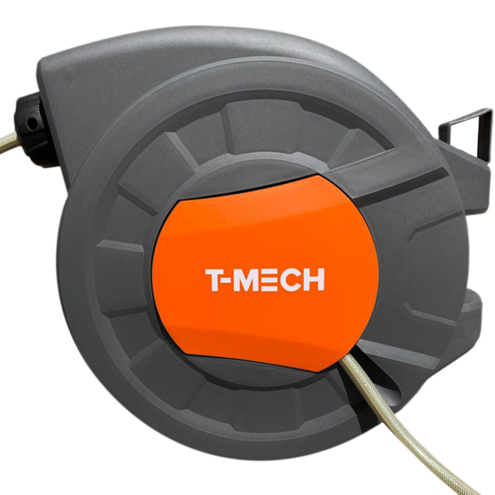 Keep your plants looking good all year round with this heavy-duty auto rewind hosepipe from T-Mech. The extra-long 30m hose, paired with the 180° pivot, gives you ultimate flexibility and enables you to get around all areas of your garden with ease. Avoid kinking and knotting in your hose, thanks to the neat retraction of the slow return system. When you want to transport your hose elsewhere, simply remove it from the wall bracket and carry it with ease using the handle located on the top of the case. Speed up watering and choose the perfect spray pattern for the job with the eight spray guns included. Suitable for all kinds of tasks and surfaces, such as watering plants, washing the car, showering your pet, patio cleaning and much more! With its heavy-duty wall fixings and UV protection, this hose is sure to serve you well for years to come.