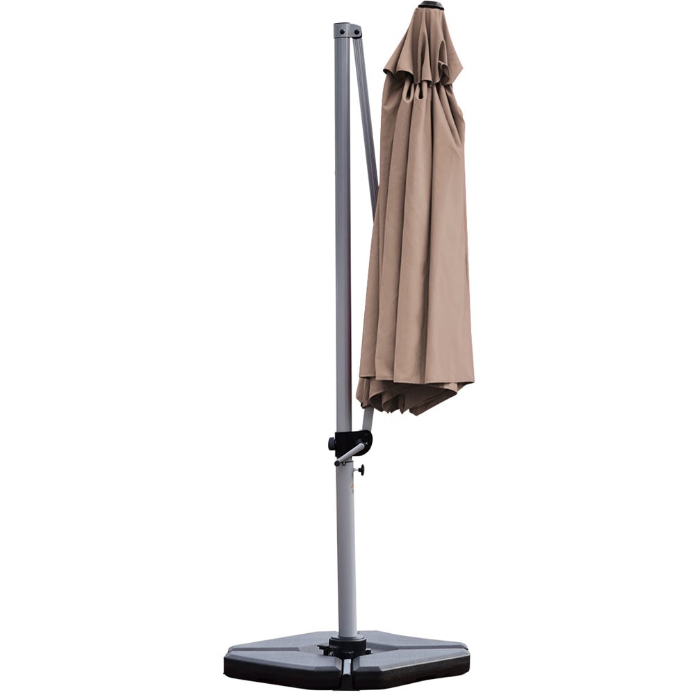 The 3.3m patio offset umbrella provides ample shade to keep you cool and protect you from the hot sun. Made of strong thick aluminium pole and 8 sturdy ribs, the patio offset umbrella is durable enough which has a long lifespan. Plus, the premium 240gsm yarn-dyed fabric canopy is fade-resistant and water-proof while offering well sun protection. Besides, for maximum convenience, the offset umbrella can rotate 360 degrees to your preferred position by simply stepping on the foot pedal and turning the pole with your hands. It is worth mentioning that this round offset umbrella can adjust tilt freely and block the sun at various angles. Moreover, the patio umbrella with a cross base keeps your umbrella firm. By the way, the operation and assembly of the patio umbrella are simple. If you are looking for such a patio offset umbrella, don't hesitate to place an order! Superior Material and Rugged Structure: The 3.3m patio offset umbrella is supported with a thick aluminium pole, which has a powder-coated surface, making it rustproof, corrosion-proof and great for outdoor use. Plus, 8 strong ribs provide extra strength for the umbrella in higher-than-normal gusts. 360-Degree Rotation and Tilt function: This round hanging umbrella can adjust the tilt angle by moving the handle in the umbrella chute up and down, keeping the area protected throughout the day. Moreover, the outdoor umbrella conveniently rotates 360 degrees to your preferred position by simply stepping on the foot pedal and turning the pole with your hands. High-Quality Yarn-dyed Fabric Canopy: Made of high-quality 240gsm fabric with advanced technology, the canopy of this garden cantilever parasol is fade-resistant and weather-resistant for long-continued use. In addition, the canopy with premium material is excellent for sun resistant and works well for water resistant. Easy-to-use Patio Offset Umbrella: The large parasol sun shade is easy to open and close with user-friendly crank, which provides excellent shade while adding to the beauty of the backyard. Besides, the heavy-duty overhanging market umbrella is easy to assemble with clear and brief instruction. Maximum Stable Design: The 3.3m patio banana parasol comes with the wind vent allowing cool air to flow through to prevent imbalance during higher-than-normal gusts. Plus, the cross base is included, but the weight base is sold separately. The 3.3m cantilever parasol is perfect with the 4-Panel bases.