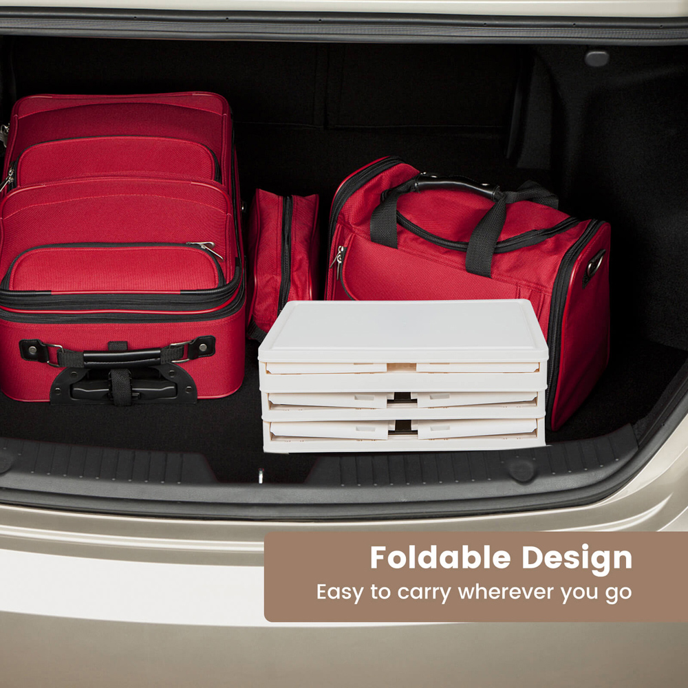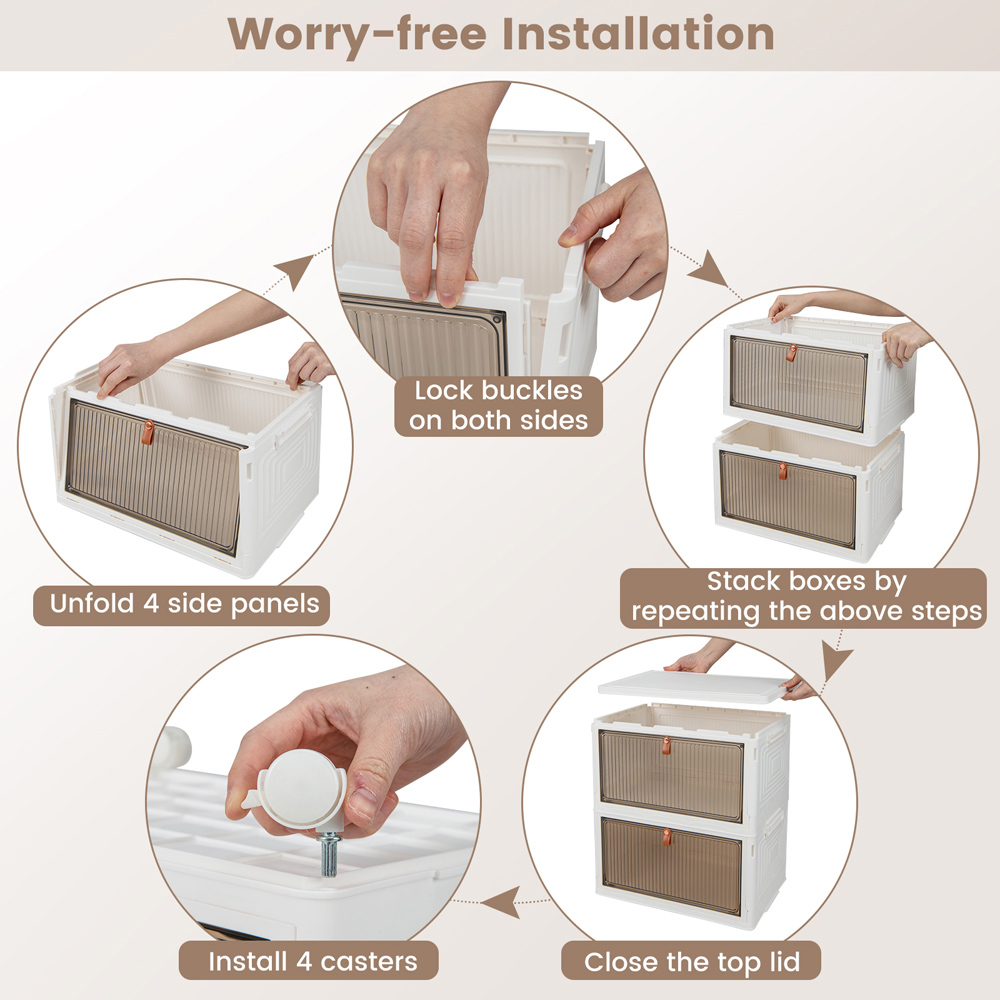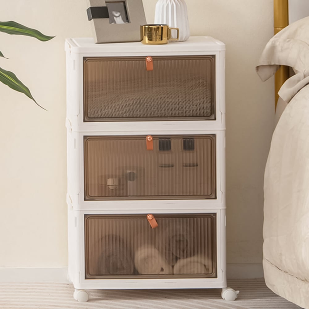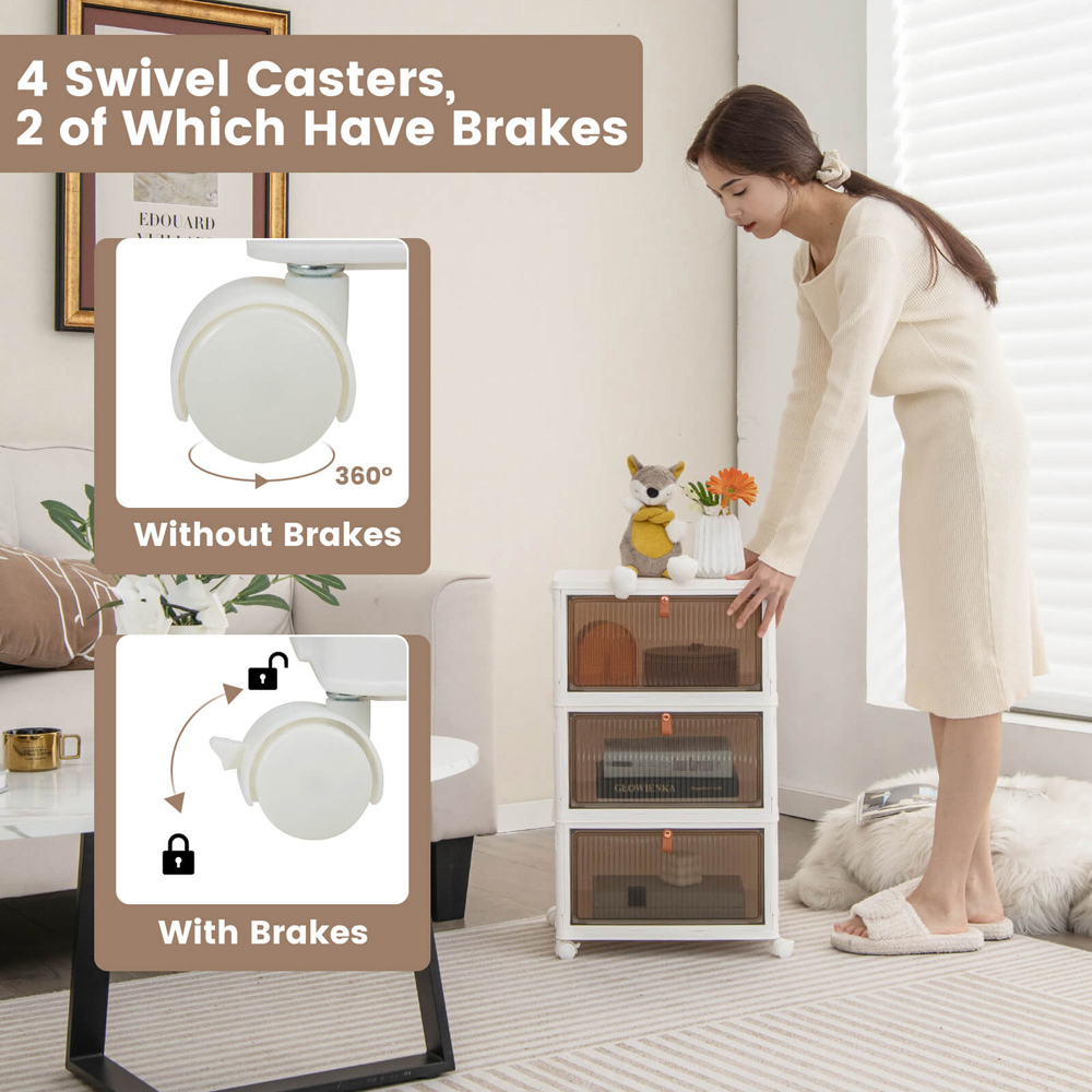 Effortlessly organise and access your footwear collection with the Costway 3 Flip Down Door White Stackable Shoe Storage Box with Lockable Wheels. Crafted from robust PP material, this durable shoe container accommodates shoes of all sizes, from flats to high heels and boots. The transparent doors, with soft handles and double magnets, ensure secure closure and clear visibility of contents, making it simple to pick out the pair you need. Its foldable design and smooth universal wheels allow for convenient relocation and storage, while the stackable feature with lockable buckles offers customizable configuration and stable stacking. Dimensions: Inner cube: H18 x W25 x L35cm and storage box: H64 x W27 x L39cm.