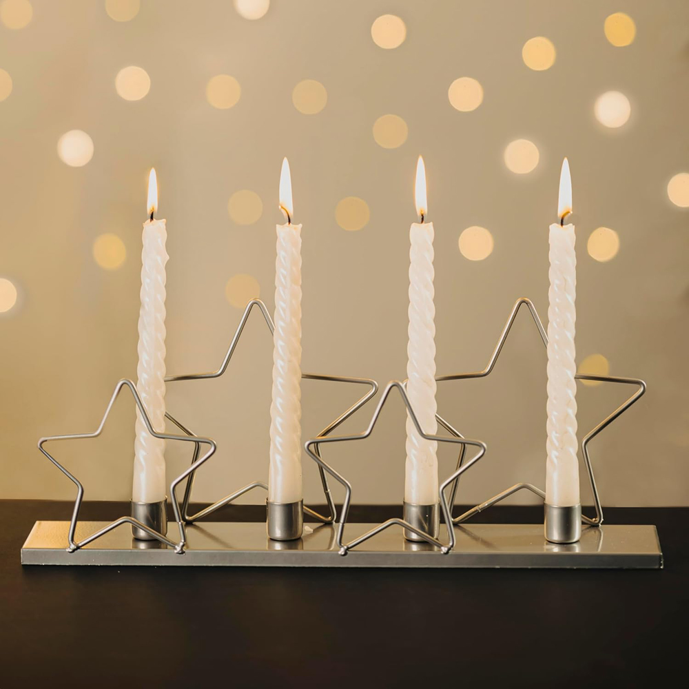 Create a beautiful Christmas vibe at your place with Marco Paul Silver Dinner Candle with Stars. This rustic antler-style candle holder has four stylish candle holders which sit neatly across this highly detailed antler-style candle holder. This superbly crafted candle holder is specifically designed as a table centrepiece, as a focal point these versatile candle holders can also be used as a window decoration or on a sideboard as well.