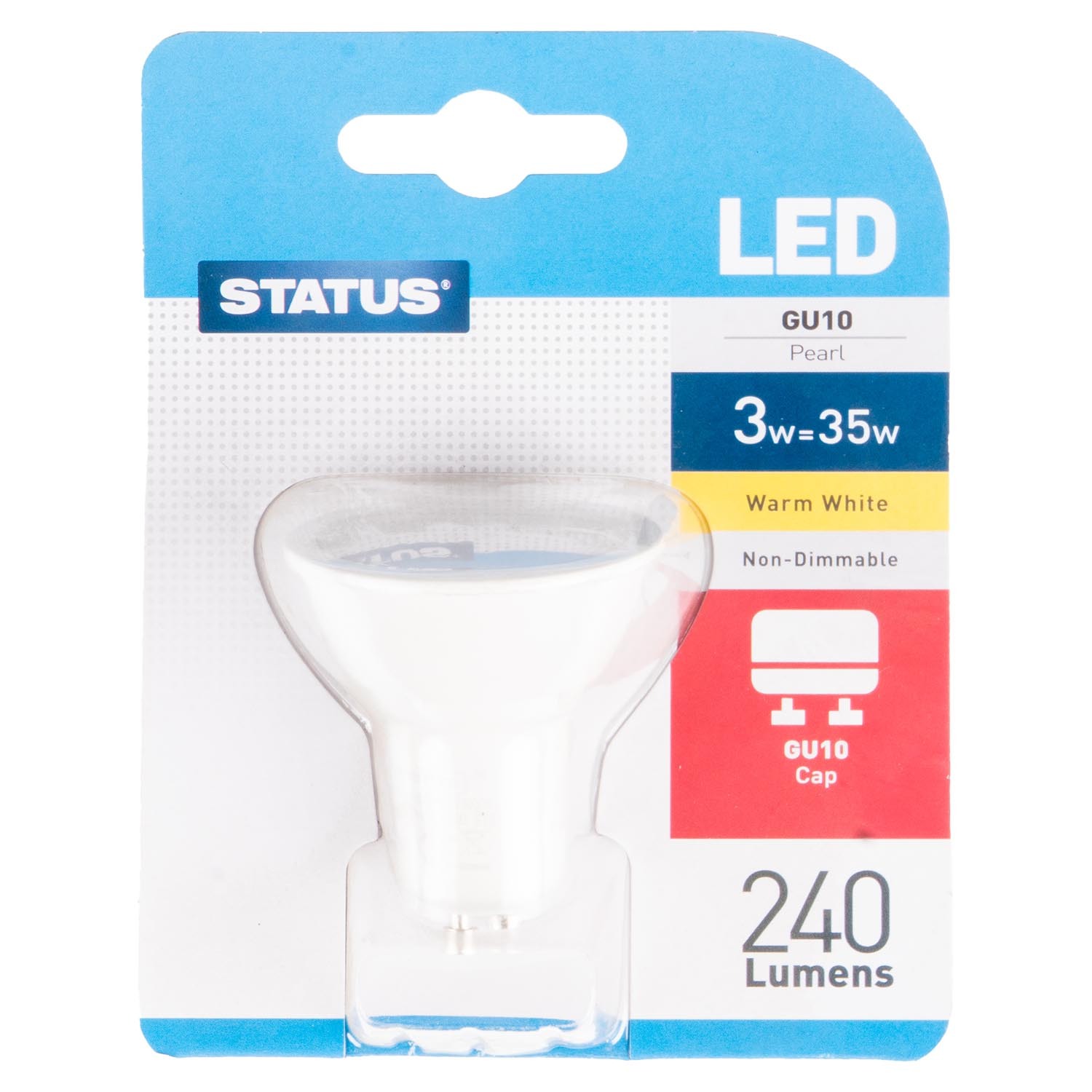 The 3W LED GU10 Pearl Warm White Bulb is a great choice of bulb for general use. Compared to heavy duty lamps is saves up to 85% energy.