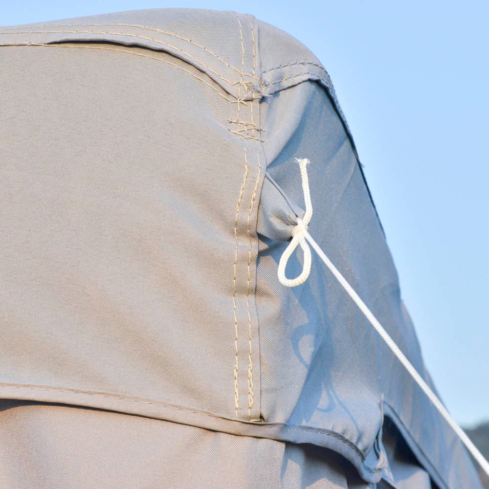 Create a beautiful and comfortable outdoor setting with this Outsunny 3 x 3m Grey Two-Tier Gazebo Tent. The canopy top of this gazebo provides protection, blocking harmful UV rays while allowing sunlight to shine through. With an enclosed netting, it provides full protection to your outdoor living space and keeps insects away. Apart from this, the solid metal construction and weather-resistant 160g polyester fabric of this metal gazebo ensure you enjoy this cosy space for years to come. Ensuring safety, the unit comes with ground stakes and four ropes for added stability. Size: 3 x 3m.