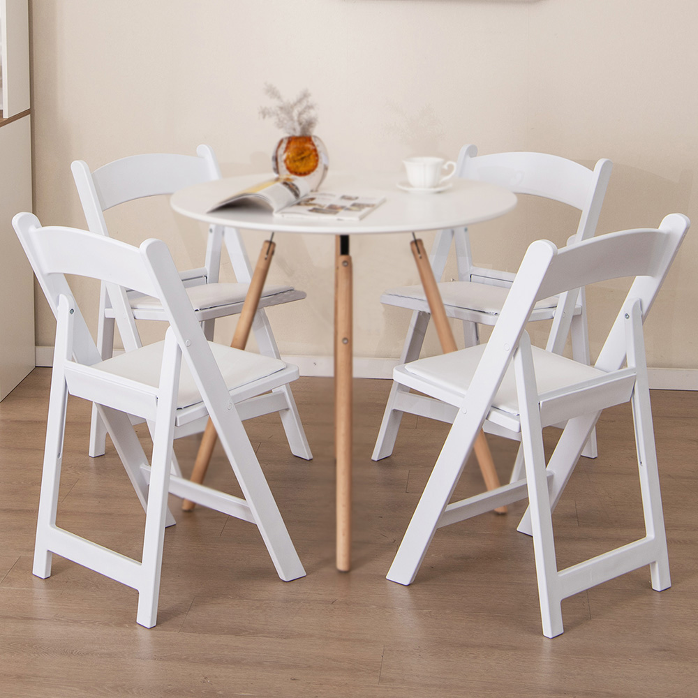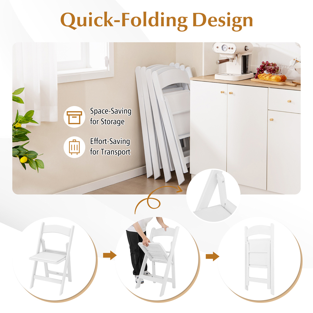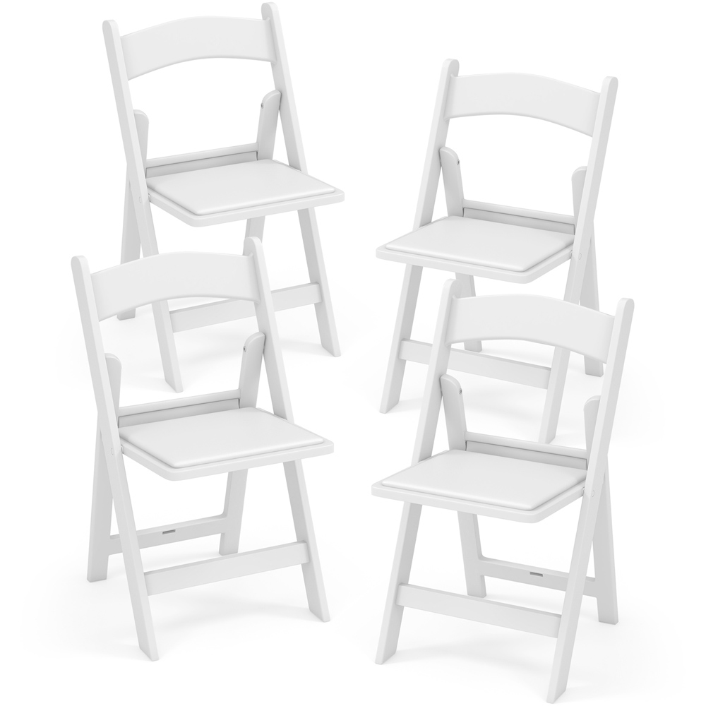 These folding resins chairs presents resistance against the elements, which is suitable for long outdoor use. Each chair features a soft padded seat that enhances comfort, allowing you to sit for extended periods. The folding design allows for compact storage when not in use, saving valuable space in your home. Designed to meet the demands of various settings, these chairs are ideal for home, office, and special events like weddings and parties. All-Weather Resin Chairs: The patio chairs are made of weather-resistant resin frame, ensuring longevity and making them perfect for outdoor use. The stable triangular design and reinforced crossbars boast a static load of up to 500 kg. Enhanced Sitting Comfort: The seat is filled with soft EPE for comfortable sitting experience. Additionally, the padding is covered in PVC material that ensures long-term use and easy clean-up. Effortless Folding Design: When not in use, the chair set can be conveniently folded and stored away, taking up minimal space. Lightweight yet sturdy, these outdoor resin chairs are convenient to carry around. Versatile Use: Whether setting up for wedding, backyard barbecue, outdoor party, family gathering, or corporate events, these portable and foldable chairs suit various seating needs and offers much convenience. No Assembly Required: The patio chairs come fully assembled and ready to use. Simply unfold and enjoy instant comfort and convenience right out of the box. Unfold Size: 46 x 44 x 79 cm (L x W x H), Folding Size: 89 x 44 x 6 cm (L x W x Thickness)