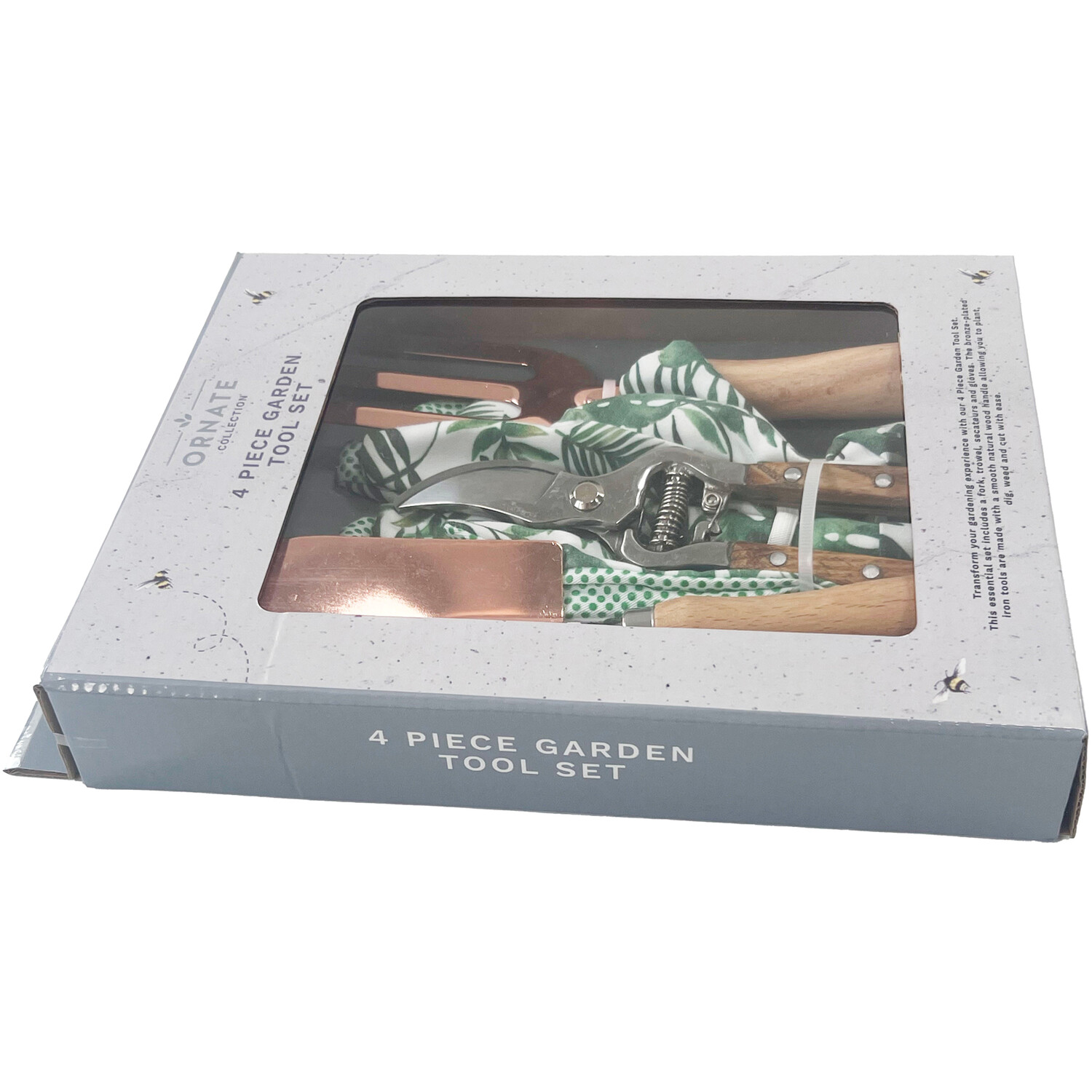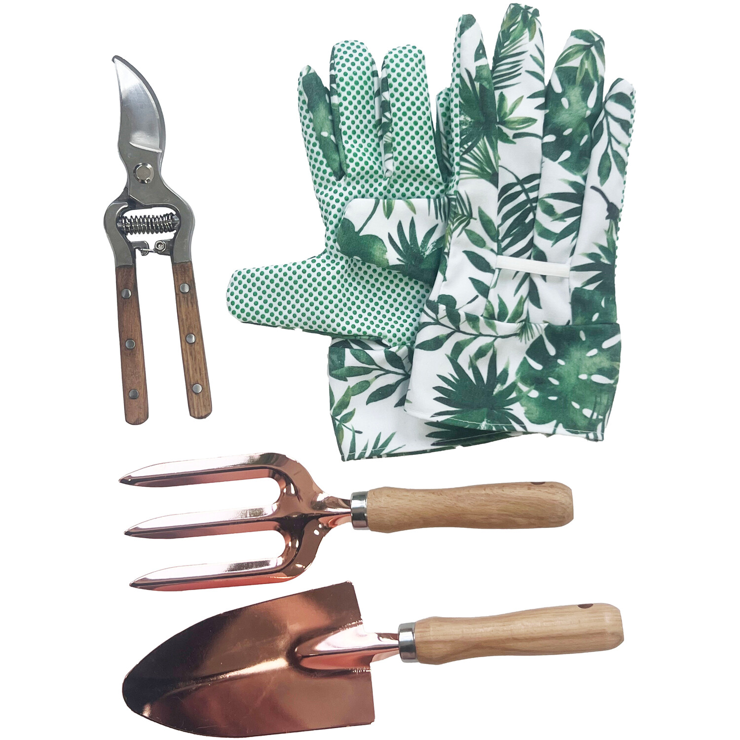 A must-have for any avid gardener, this 4 Piece Garden Tool Set combines both functionality and style, making it the perfect addition to your gardening collection. The set includes a trowel, fork, secateurs, and a pair of gloves, essential tools for digging, planting, pruning, and weeding. Designed to help you maintain a flourishing garden, these compact and lightweight tools feature ergonomic wooden handles that provide a comfortable, secure grip, ensuring both durability and ease of use. Whether you're tackling small tasks or large gardening projects, this set will enhance your gardening experience.