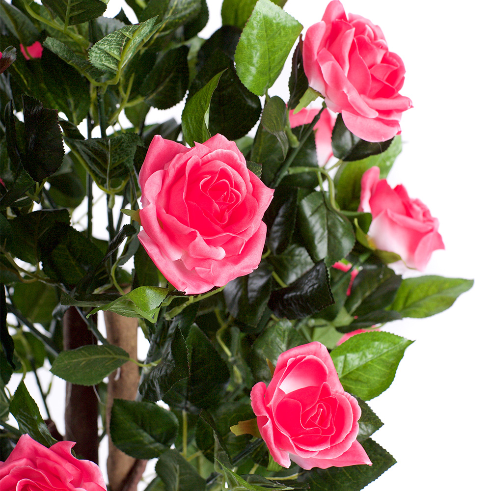Add the perfect pop of colour to your space without the upkeep with the Best Artificial Pink Rose Plant in Pot 4ft. This beautiful set includes a wooden stem, 19 lifelike roses, 321 verdant leaves, and a small starter pot, all meticulously arranged for you. The roses measure 10 x 10cm and require no maintenance, making them a hassle-free addition to your space. You can easily shape and style the arrangement to your preference, and it is suitable for outdoor use. Best of all, it comes fully assembled for your convenience.