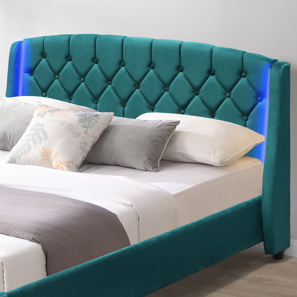 Comfy Living Double Green Fabric Bed Frame with LED Headboard