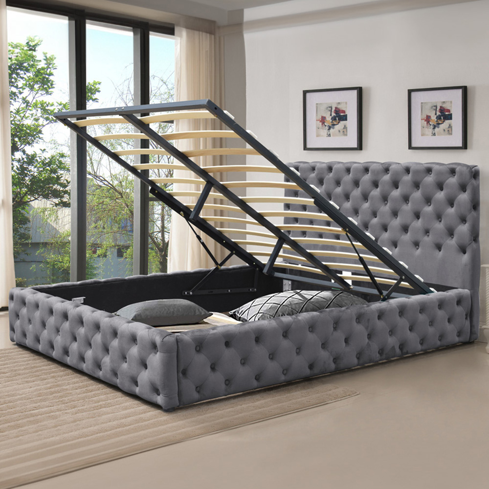 Add style to your bedroom with this classy Comfy Living Double Green Tufted Fabric Gaslift Bed Frame. This luxuriously upholstered bed features a stylish tufted frame that gives it a classic touch. The stunning colour adds a more contemporary aesthetic, ensuring that it suits most decor styles. The high-quality build ensures long-lasting comfort and durability for years to come. It comes flat-packed for easy delivery and assembly in the comfort of your home. The gas-lift mechanism allows for hassle-free access to the ample under-bed storage area, keeping your bedroom well-organised and clutter-free. This unique frame is sure to transform your bedroom into a serene haven.