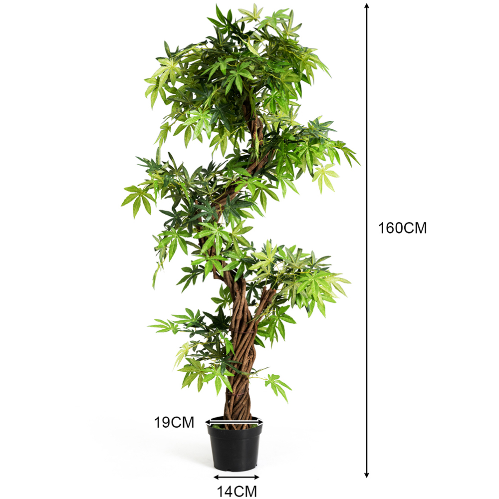 Bring nature indoors with the Costway Artificial Keel Red Vine Bonsai. Standing at 5 feet tall, this simulated spiral bonsai features thick trunks and realistic leaves, giving your home or office a natural feel. Its detailed design really stands out, making it a stylish decor piece. Plus, it’s totally low-maintenance, no watering or special care needed. The pot has a sleek metallic finish that enhances its look. Perfect for both indoor and outdoor settings, it features moss in the basin and fits in with any decor style, adding a fresh and elegant vibe to desks, coffee tables, patios, and more. The pot is made from durable plastic with cement for stability, while the leaves are crafted from PVC and the trunks from solid wood, ensuring it lasts. Cleaning is a breeze; just give it a quick wipe with a damp cloth.