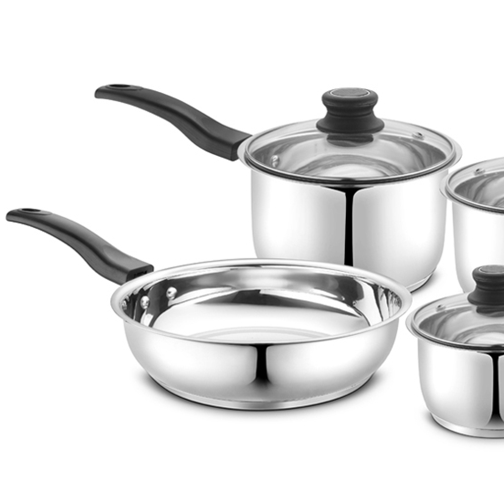 Ensure excellent cooking performance with the Highlands Homeware Stainless Steel Saucepan with Glass Lid 5 Pack. This set is crafted using high-quality stainless steel with induction base for durability and longevity. It also features sturdy handles with elegant glass lids for convenient usage. This set is suitable for gas, electric rings, solid hotplates, ceramic, halogen and induction hobs. This set includes a 14cm milk pan, 16cm saucepan, 18cm saucepan, 20cm saucepan and 24cm frying pan.