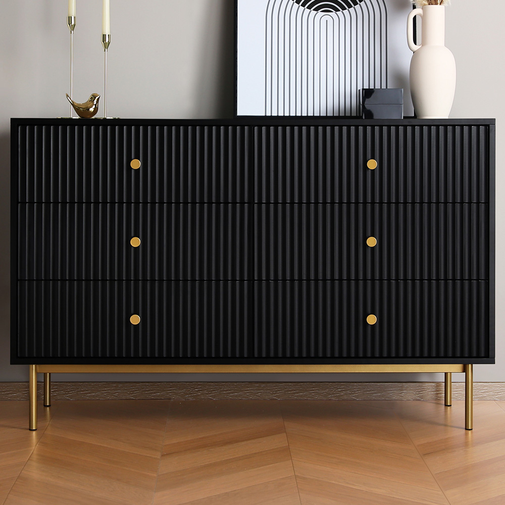 The Devon wide chest of six drawers is a sophisticated and functional piece designed to enhance bedroom storage solutions. This chest of drawers is constructed with a sturdy MDF frame, finished in a matte PU paint. The wide chest of drawers features six spacious drawers, providing ample space, making it an essential chest of drawers for bedroom. The metal handles and legs, coated with a durable golden powder finish, add a touch of elegance. This large chest of drawers combines practicality with aesthetic appeal, fitting seamlessly into various interior designs. The chest of drawer offers a versatile storage solution, while the different colour options allow for customisation. Whether you are looking for a functional storage unit or a stylish accent piece, the Devon six drawers chest is a perfect blend of utility and timeless design