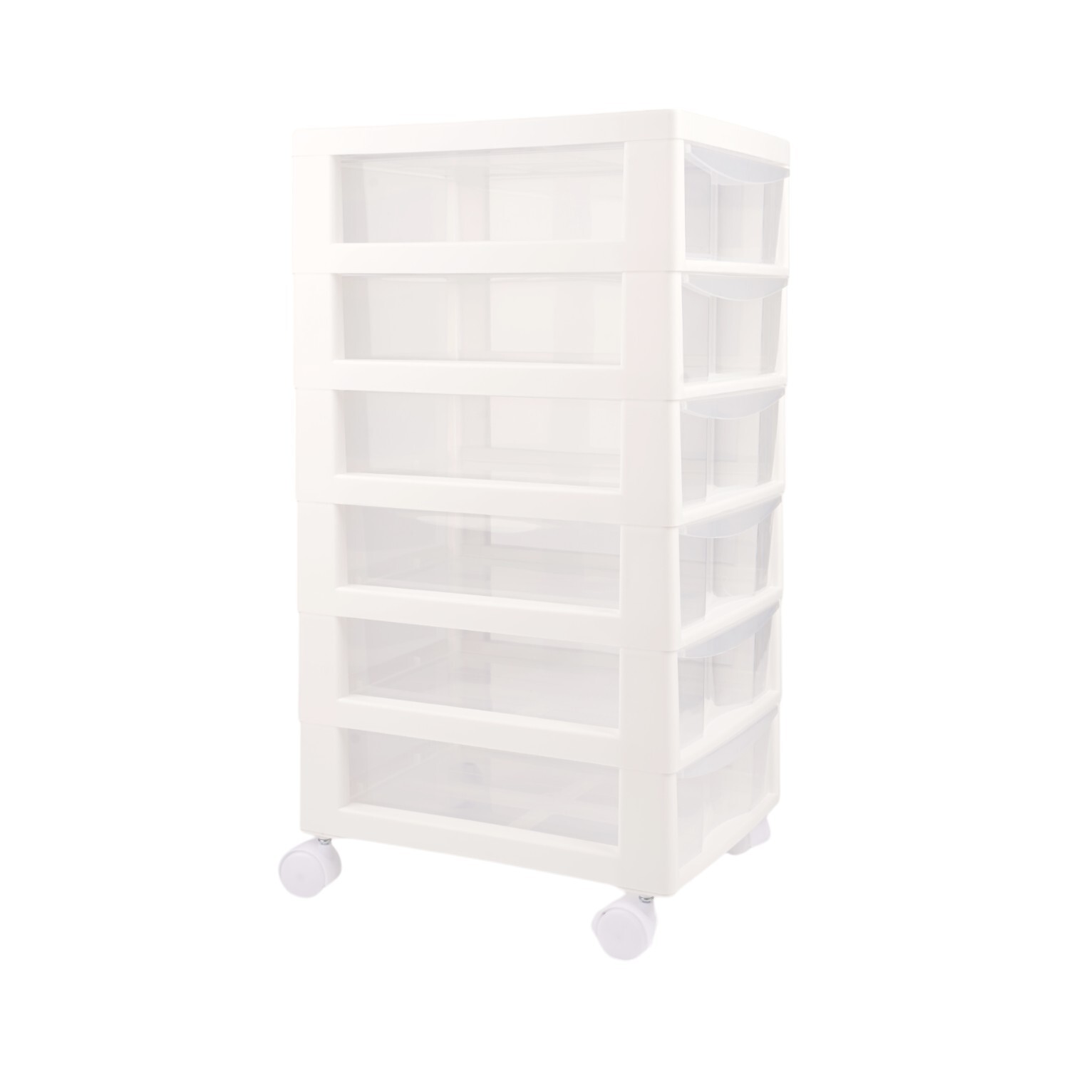 Organise your workspace with the 6 Drawer Storage Organiser. Ergonomically designed, this storage organiser features six spacious drawers that provide plenty of room for storing stationery essentials, knick-knacks, and more. Its smooth gliding wheels offer portability, allowing you to easily place it under your table or desk for easy access. The simple design in white blends with various interiors, bringing understated style and organisation into any bedroom, living room, or home office.