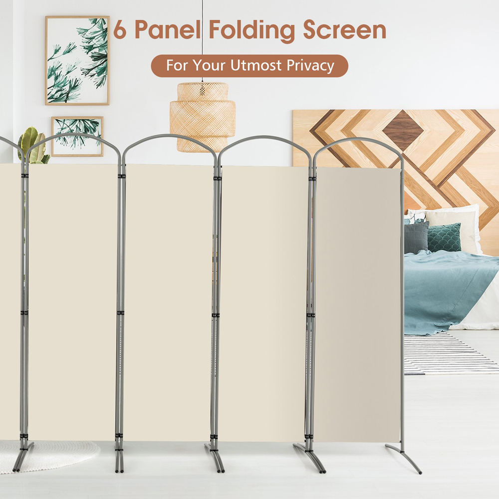 Transform your space with ease using the versatile Costway 6 Panel Cream Freestanding Fabric Room Divider, perfect for both home and office settings. This room divider not only offers the privacy you need but also serves as a stylish backdrop for online meetings. Constructed with a robust metal frame and a stable base, it ensures durability and rust resistance thanks to the powder coating process. The high-quality woven fibre panels are wear-resistant and promote air circulation, making this divider both functional and breathable. Its flexible design allows each panel to be used individually or linked together with connecting clasps, providing various configuration options like L-shape, W-shape, or C-shape to suit your needs. Easy to assemble and equally simple to store, this room divider is an ideal solution for creating temporary private spaces or blocking sunlight next to windows. It measures 188cm in height and 331cm in length for ample coverage.