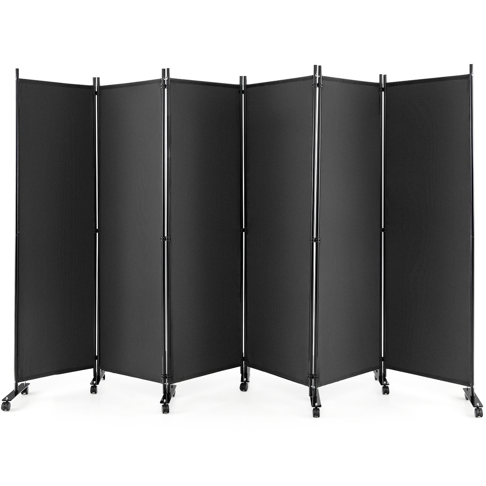 Enhance your living or work space with this versatile Costway 6 Panel Grey Room Divider on Wheels. Boasting a robust metal frame coated with rust-resistant powder, this divider is built for durability and ease of maintenance. The high-quality woven fibre panels offer excellent wear resistance and privacy, while the innovative design includes 14 lockable universal wheels for effortless mobility. Whether you need to create a secluded corner for work, a temporary bedroom, or just want to shield against the sun, this room divider is an ideal solution. It's designed to be flexible, with each panel capable of being used individually or linked together, allowing for various configurations to suit any room size or purpose.