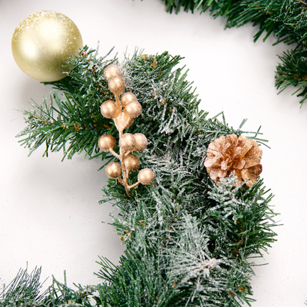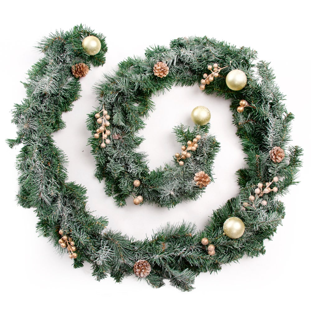 Add a traditional decoration to your home with this Marco Paul Snow Dusted LED Christmas Garland 270cm. A large artificial garland that will be part of your festive decor for years. This stunning garland can be placed along your fireplace, windowsill, or up your staircase to carry on the Christmas decorating throughout your home. Adorned with pinecones, berries, and intertwined LEDs, this light-up ornament is a perfect way to bring festive style into your home. Whatever the decor theme you have chosen, traditional, winter wonderland, or rustic, this light-up garland will not only fit in but will stand out and be the main attraction for your decorations. Easy to hang and move from place to place, this garland can be used year after year. The leaf size is 6cm.