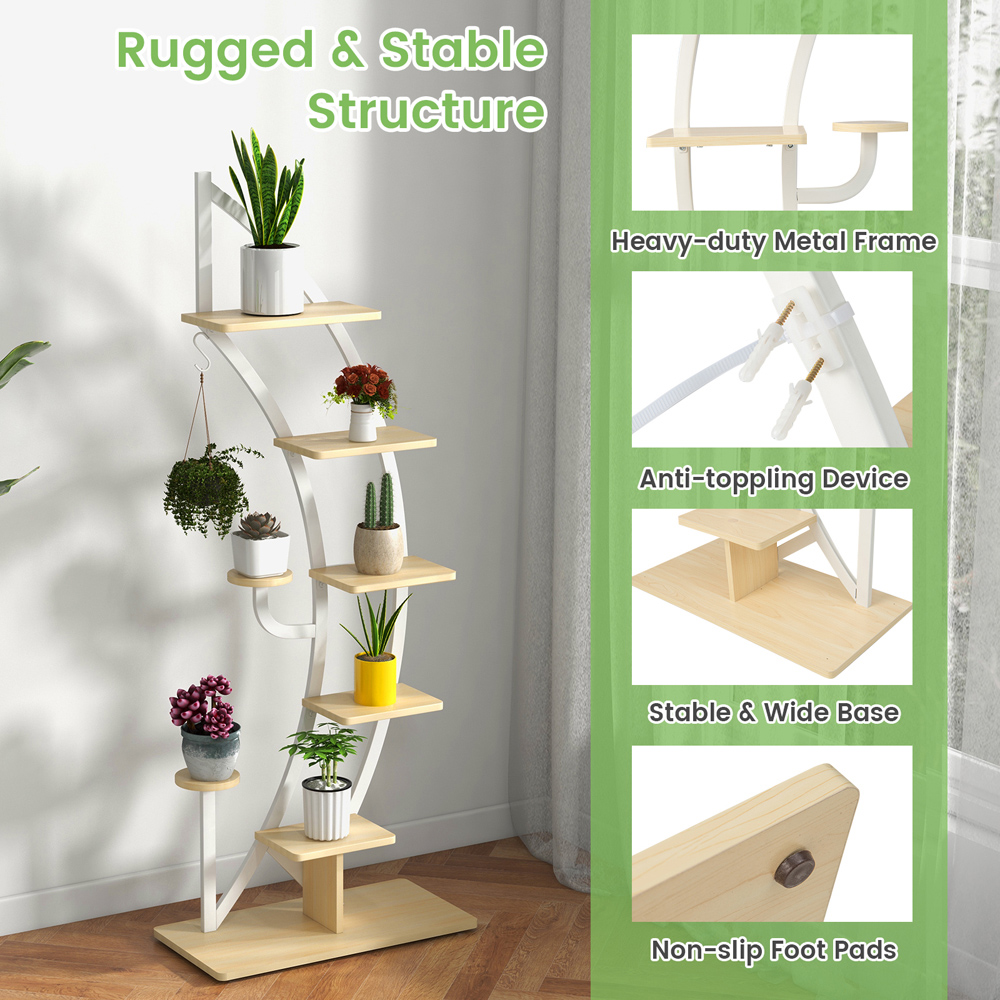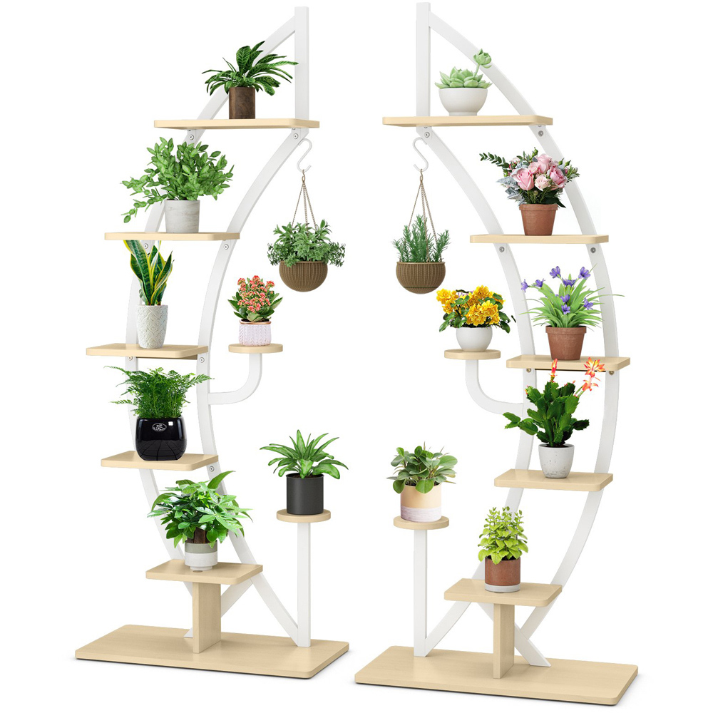 Maximise your space and display your favourite plants with style using the Costway 8 Tier White Curved Half Moon Shape Wooden Plant Stand. This elegant plant stand features a unique curved half-moon design that not only looks beautiful but also allows for optimal sunlight for each plant. Constructed from durable powder-coated steel, it offers great rust resistance and can support up to 20 kg on each shelf. It's perfect for showcasing plants, books, and other decorations in any room. Additionally, the anti-toppling device ensures stability and safety, making it a practical addition to your home. Whether in your living room, balcony, or office, this plant stand adds a touch of sophistication while keeping your space tidy and organised.