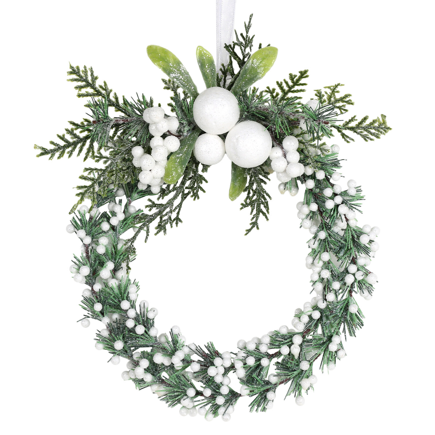 The 9" Xmas Wreath Decoration is a beautiful festive decoration for your home. The wreath is inspired by Christmassy mistletoe and evergreens to create a lovely, realistic piece with wood-effect branches and lovely white berries. The wreath has a Scandi feel and is accented with glitter for a subtle shimmer like snow. It will look beautiful hanging on your door, wall, or window this Christmas.