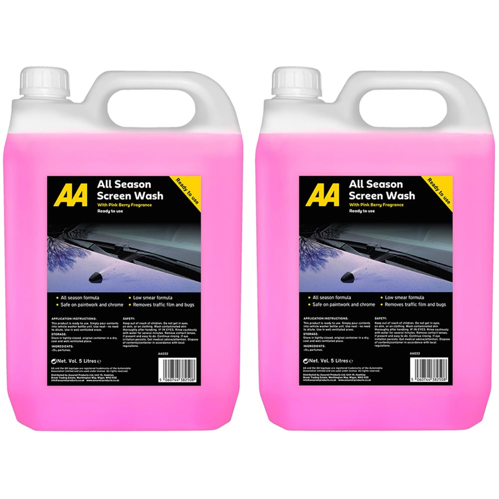 AA Car Essentials Pink Berry Low Smear Summer Screen Wash 5L 2 Pack