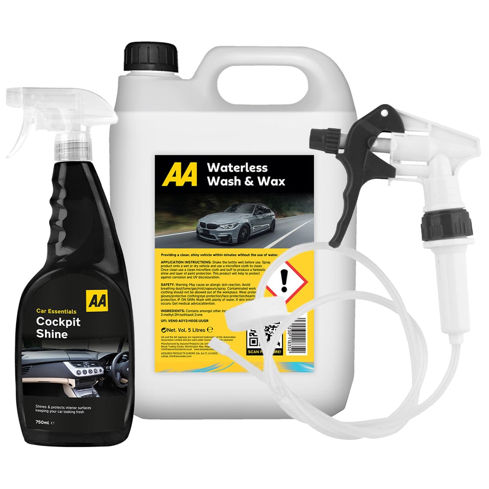 AA Waterless Wash and Wax 5L with Long Hose Trigger Spray and Cockpit Shine 750ml