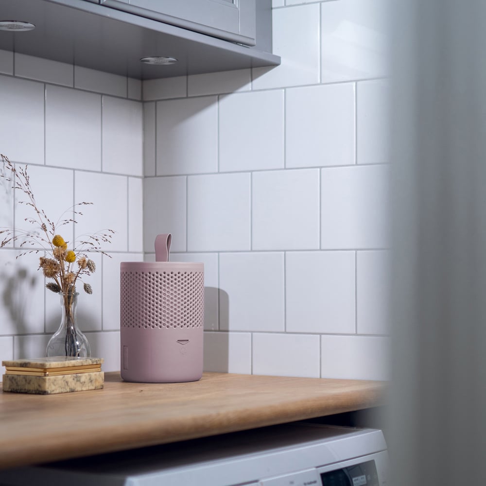 Keep moisture, mould and dampness at bay with AbsoDry Pink Moisture Absorber Bag. It blends nicely into any room in your home or at the workplace. With its Scandinavian and minimalistic shape - it gives a modern and decorative expression. The refill bag of 600g comes with moisture-absorbing crystals and lasts 1 to 3 months depending on the humidity where it is placed. Made from 94% recycled materials - it is suitable for spaces up to 50m3. Dimensions: 148 x 148 x 215mm.