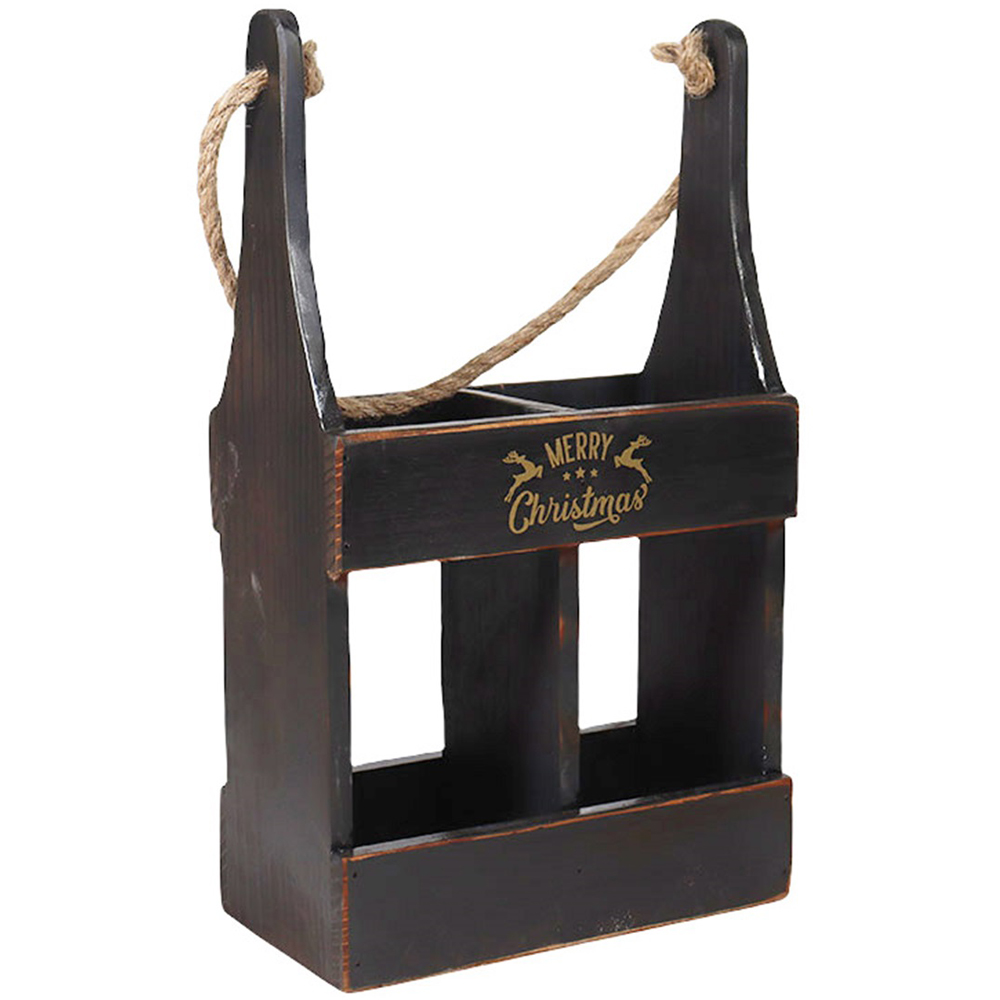 Elevate your wine experiences with this rustic 39cm Wooden Black 2 Bottle Wine Holder, perfect for gifting to wine aficionados. Hand-finished with a sturdy rope handle, this carrier combines style and functionality, making it ideal for transporting your favourite vintages with ease.