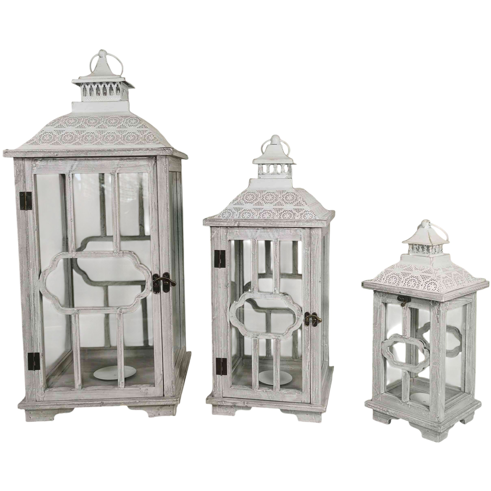 Add natural warmth and texture to your interiors with this set of hurricane garden lanterns, handcrafted from sustainable mango wood, with recycled glass panels. Size included: 74cm, 56cm and 39cm.