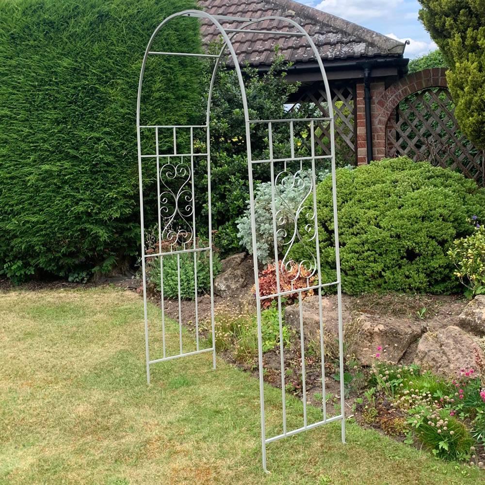 Elevate your garden's charm with the 211cm Grey Garden Arch, a stunning addition that blends functionality with aesthetics effortlessly. This metal garden arch is not only easy to assemble but also features a powdered coating that enhances its durability and attractiveness. Its design is perfect for supporting climbing plants, adding a touch of elegance to any outdoor space.